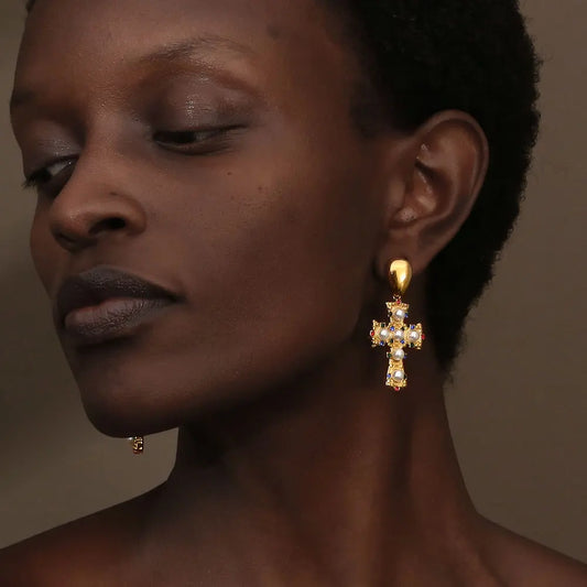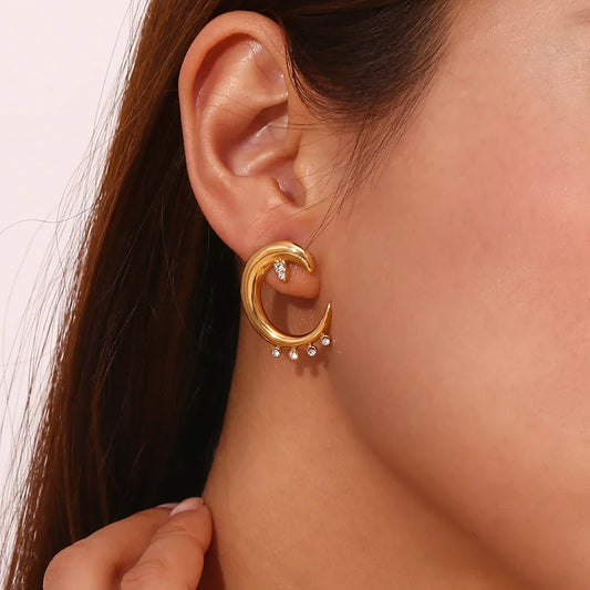 Brincos de Aço Inoxidável com Pedra Natural Oval