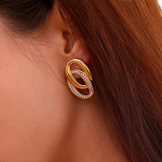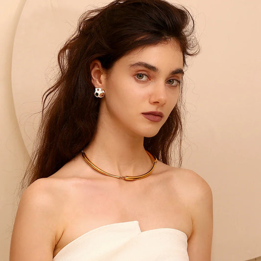 Brincos Elegantes de Pérola Banhados a Ouro 18K