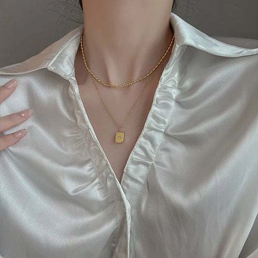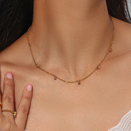 Colar e Pulseira de Aço Inoxidável com Zircão - EILIECK
