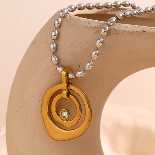 Colar Duplo Círculo Dourado com Pingente Elegante