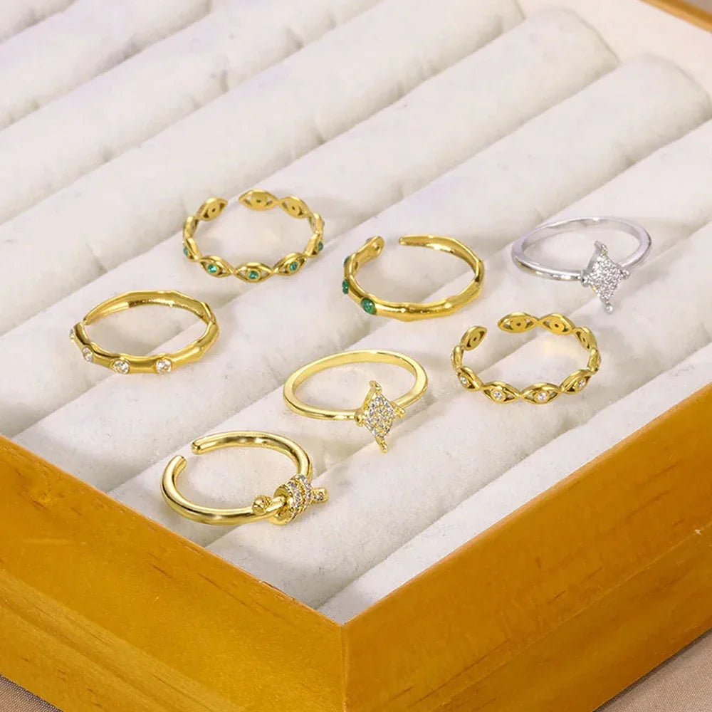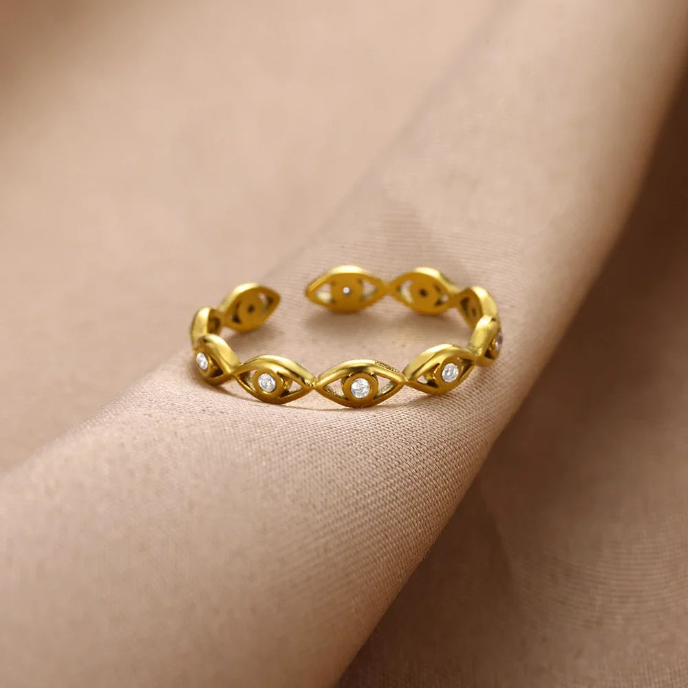 Descubra a elegância atemporal do nosso Anel de Aço Inoxidável com Zircão Verde e Olho Grego, uma peça que exala charme e sofisticação. Ideal para ocasiões especiais, este anel é o presente perfeito para mulheres que apreciam o luxo e a exclusividade.
