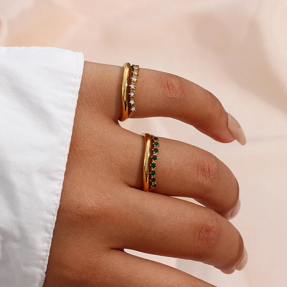 Anel Elegante de Aço Inoxidável com Zircônias