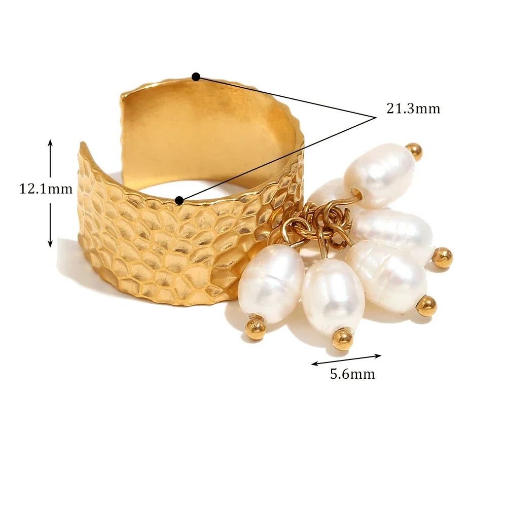 Anel Ajustável de Pérola com Borla em Aço Inoxidável Banhado a Ouro