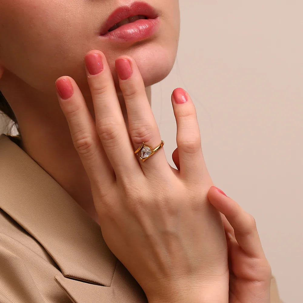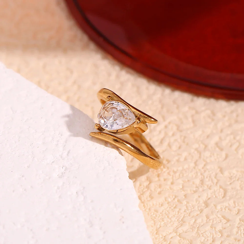 Flügelring mit Zirkonia-Tropfen, vergoldet mit 18K