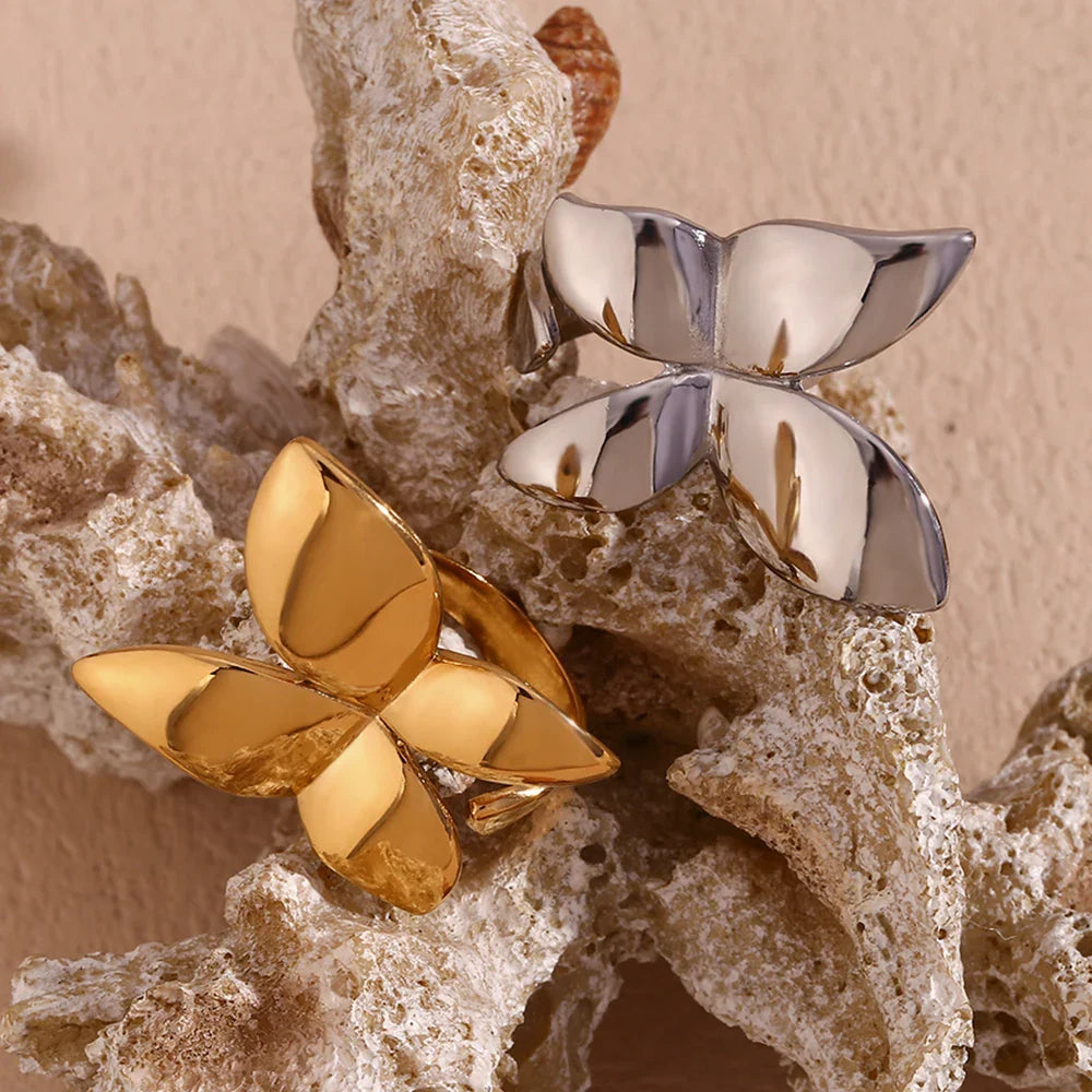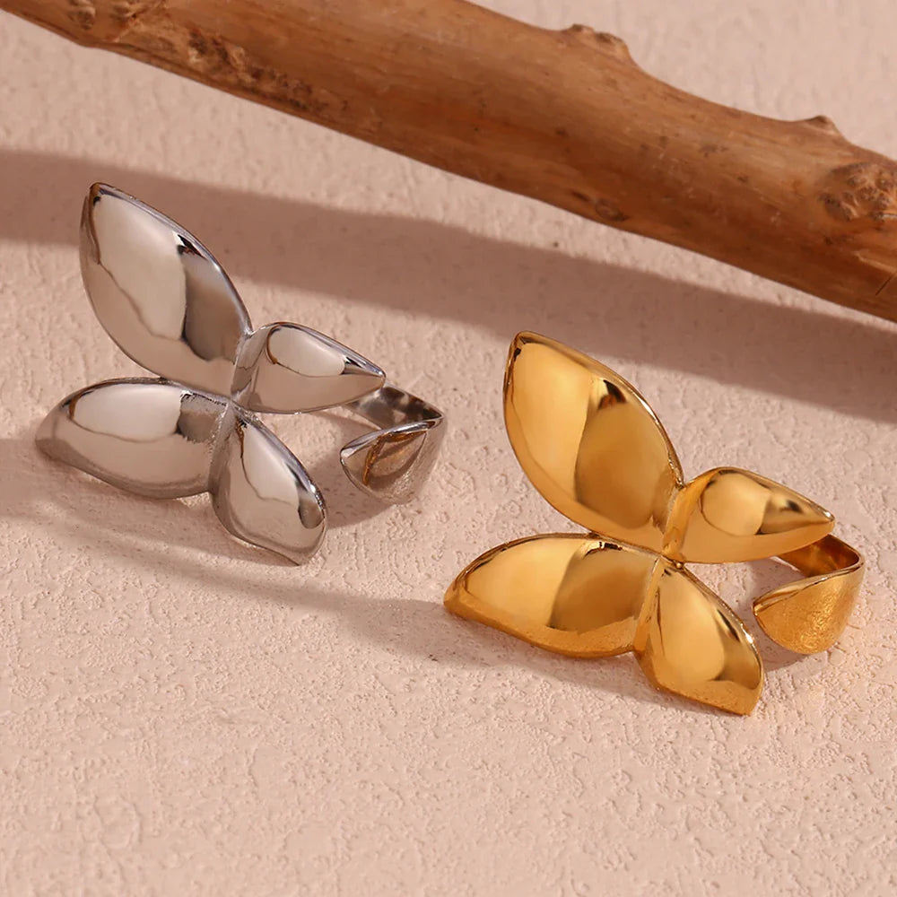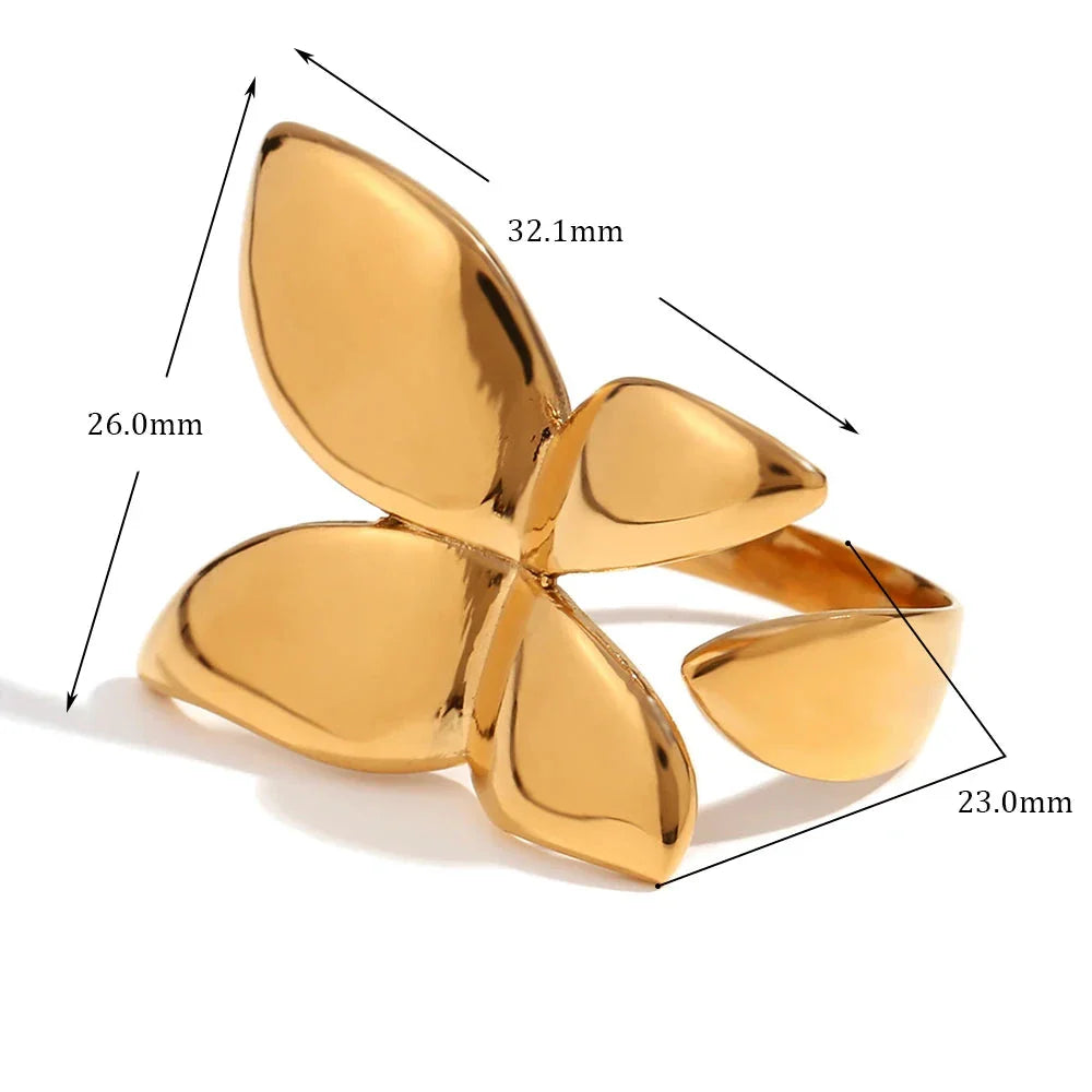 Anel Borboleta Aberta em Aço Inoxidável Banhado a Ouro