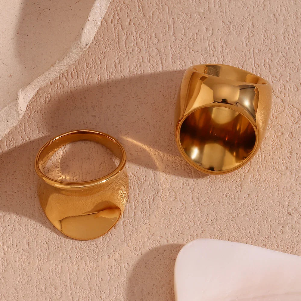 Descubra a sofisticação do nosso Anel Dourado de Aço Inox, uma peça que combina elegância e modernidade. Com um design suave e côncavo, este anel é perfeito para quem busca um acessório marcante e versátil.