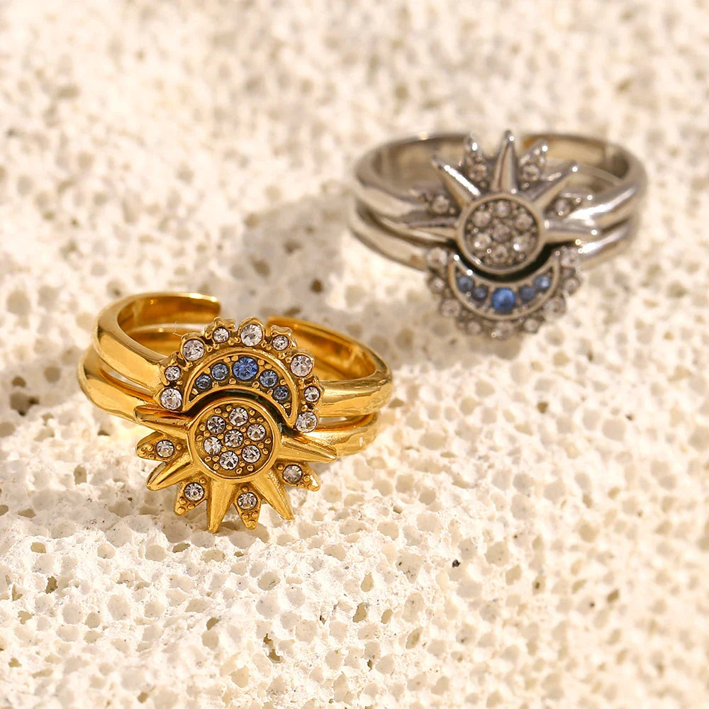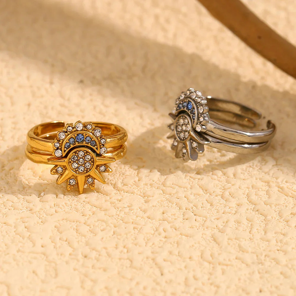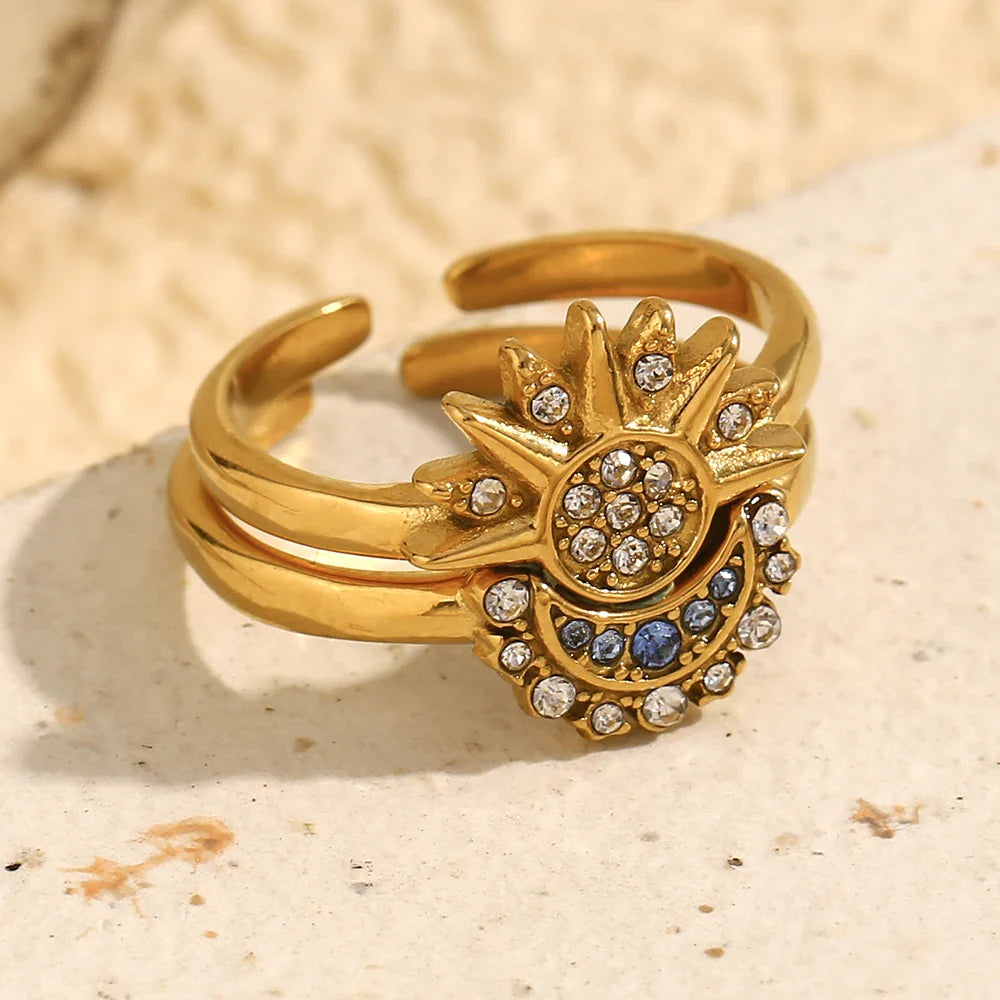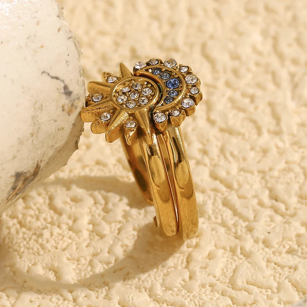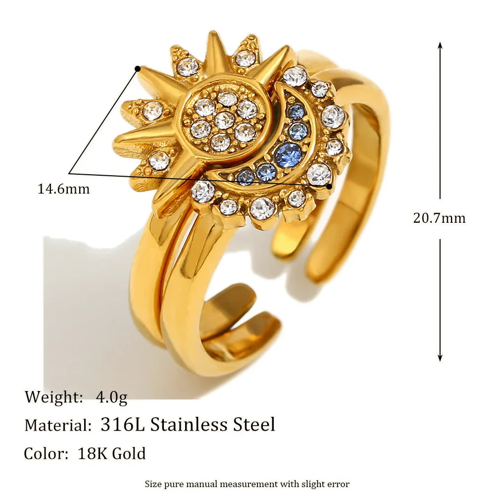 Anel Duplo Luxo Sol e Lua em Aço Inoxidável 18K
