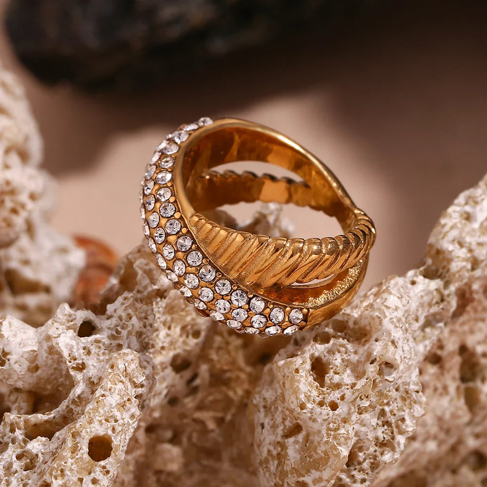 Anel Elegance Diagonal com Zircônias Banhado a Ouro 18k