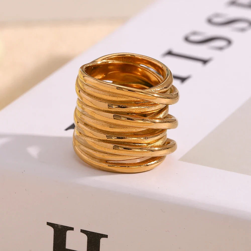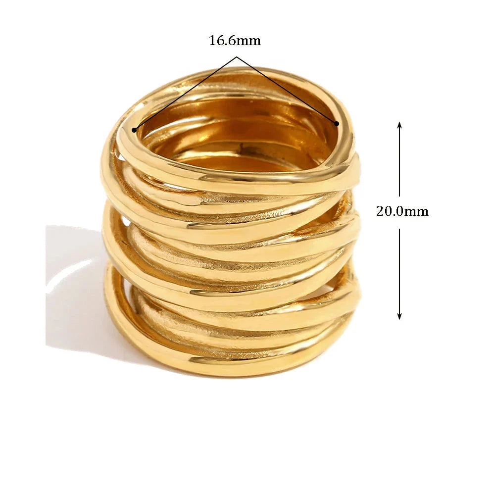 Transforme seu estilo com o Anel Elegância Dourada em Camadas e sinta-se confiante e sofisticada em qualquer ocasião.
