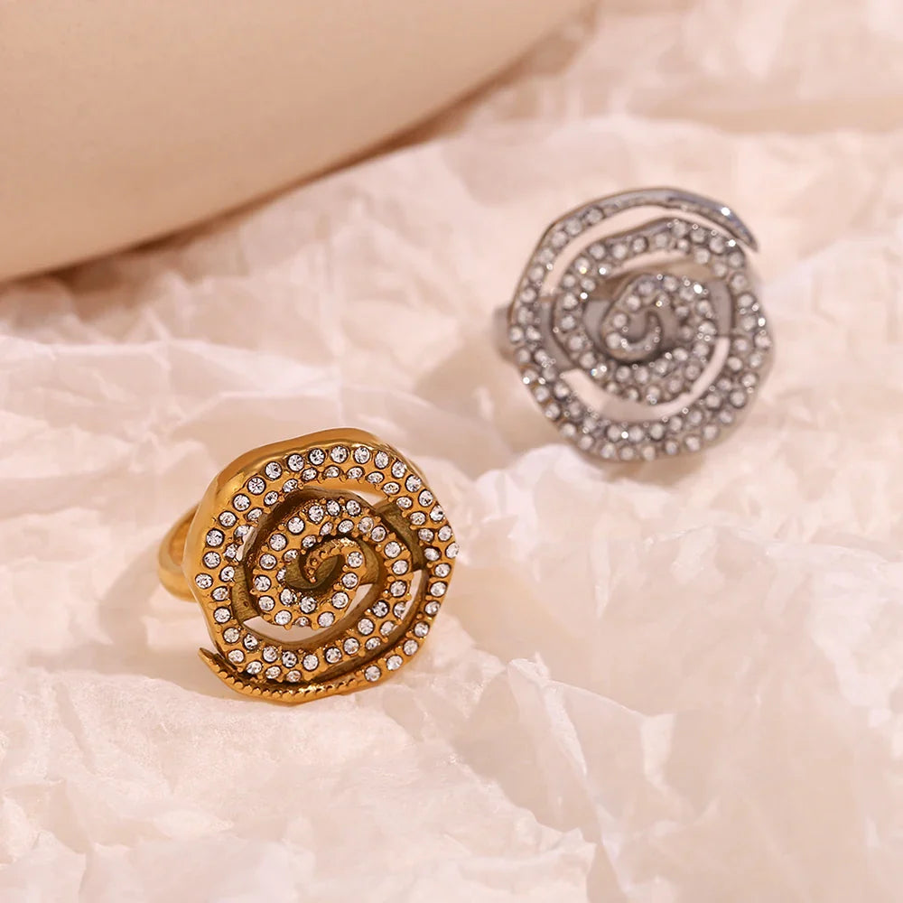 Com o Anel Espiral Elegante com Zircônias, você estará sempre pronta para brilhar e impressionar. Adicione este toque de glamour ao seu visual e sinta-se especial todos os dias.