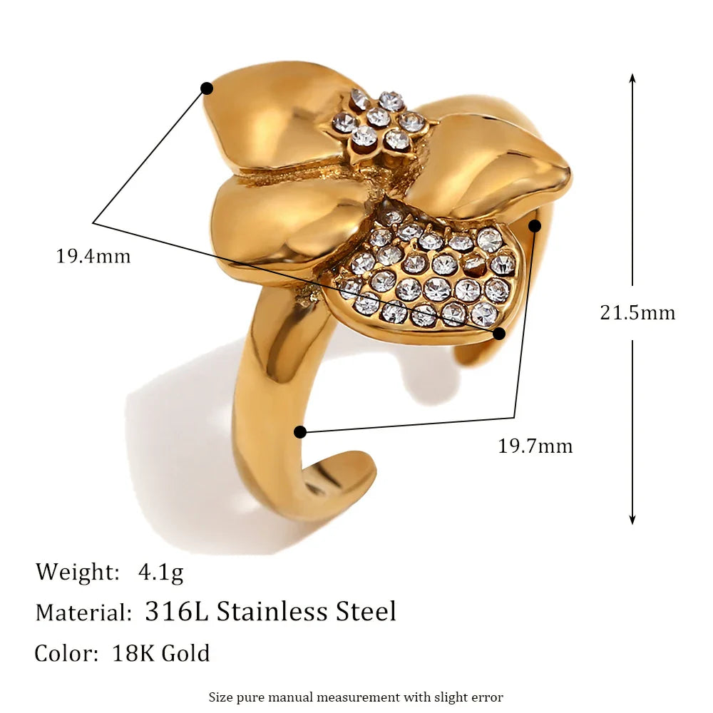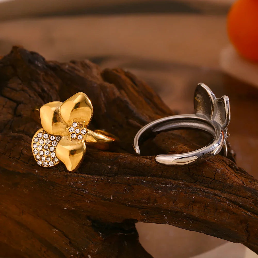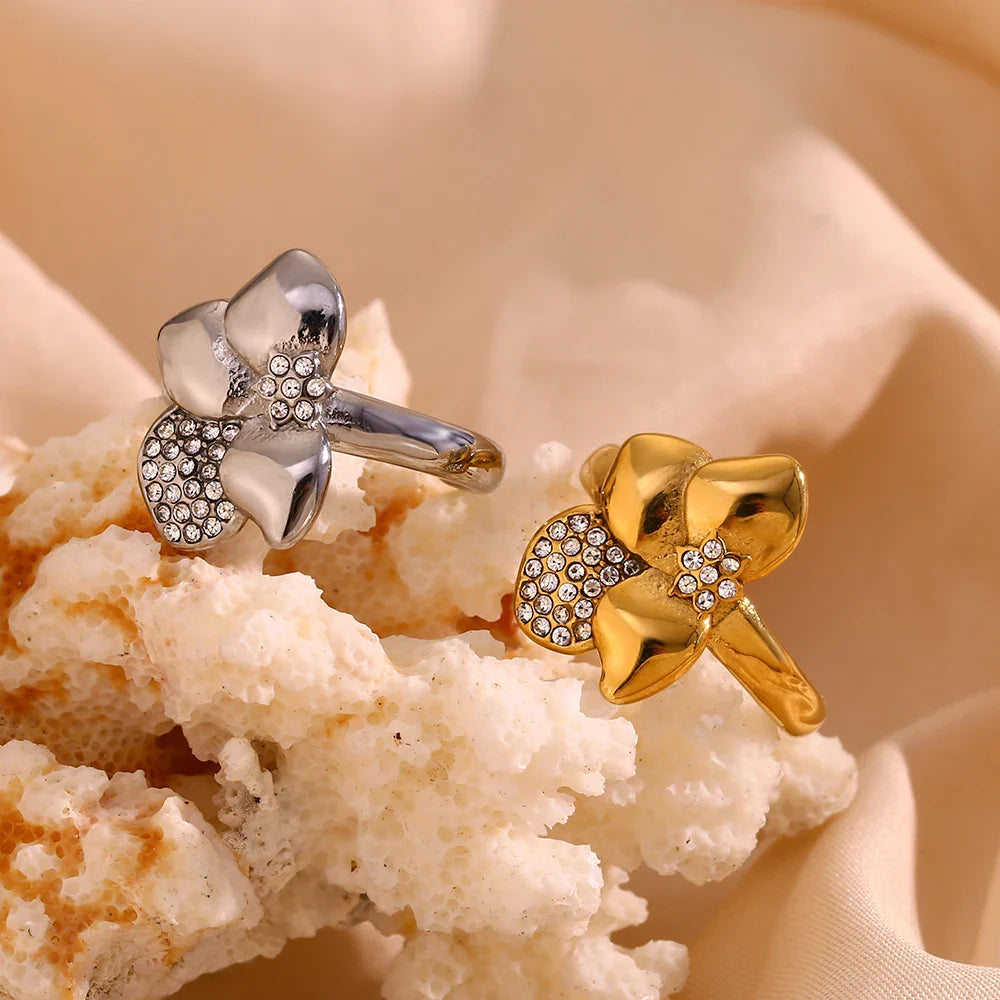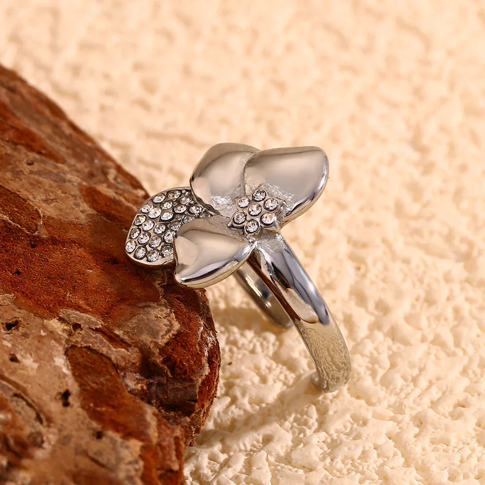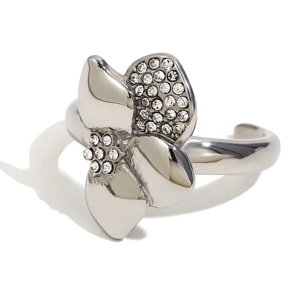 Eleve seu estilo com o Anel Flor Assimétrico com Strass, uma peça que combina beleza e qualidade incomparáveis.