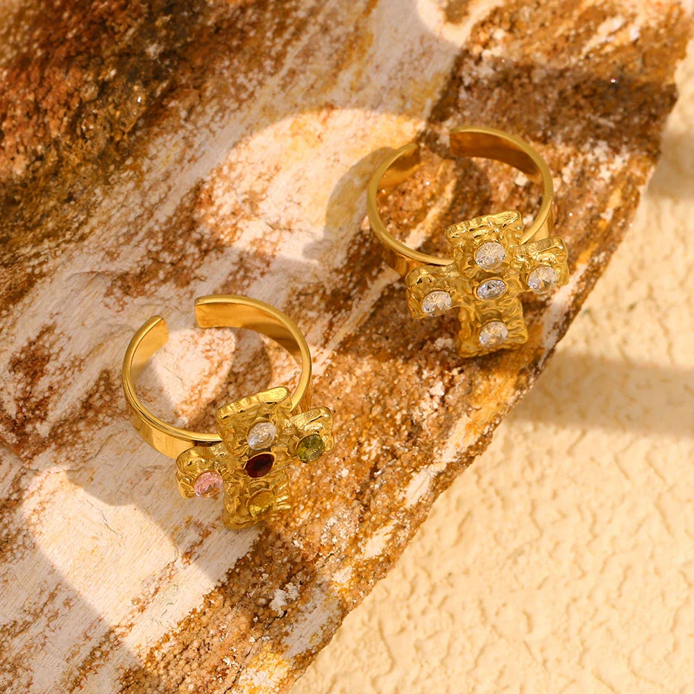 Descubra a elegância atemporal com o nosso Anel Luxo Cruz com Strass Colorido, uma peça de joalheria que exala sofisticação e estilo. Feito em aço inoxidável 316L e banhado a ouro 18K, este anel é a escolha perfeita para mulheres que apreciam moda e qualidade.