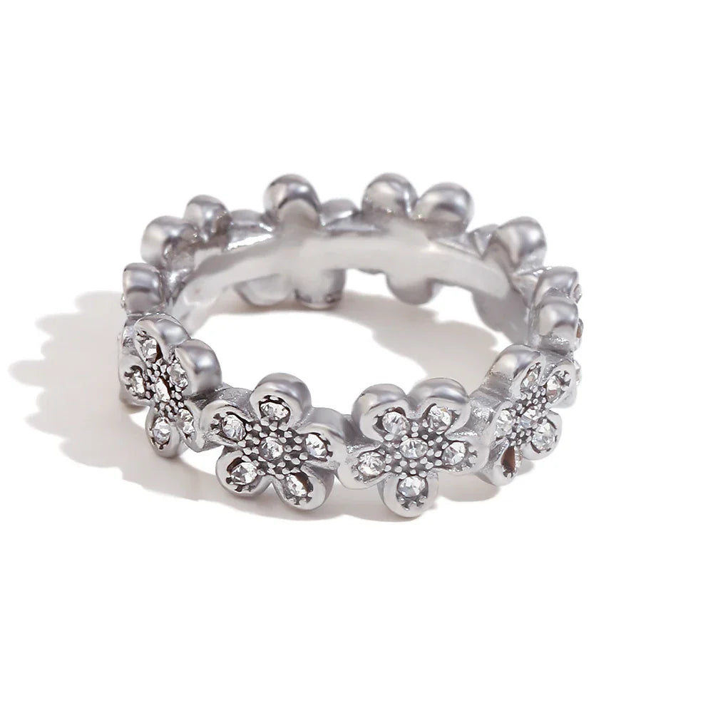 Anel Margarida com Zircônias em Aço Inoxidável Dourado