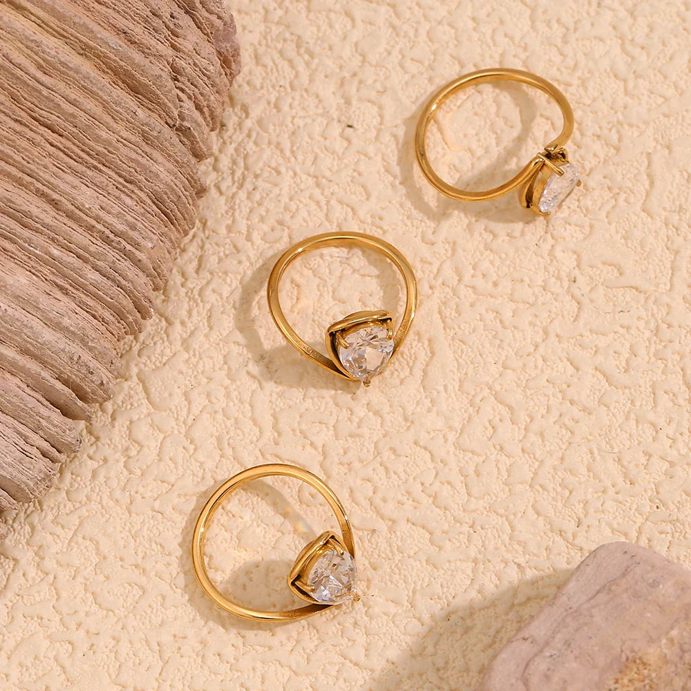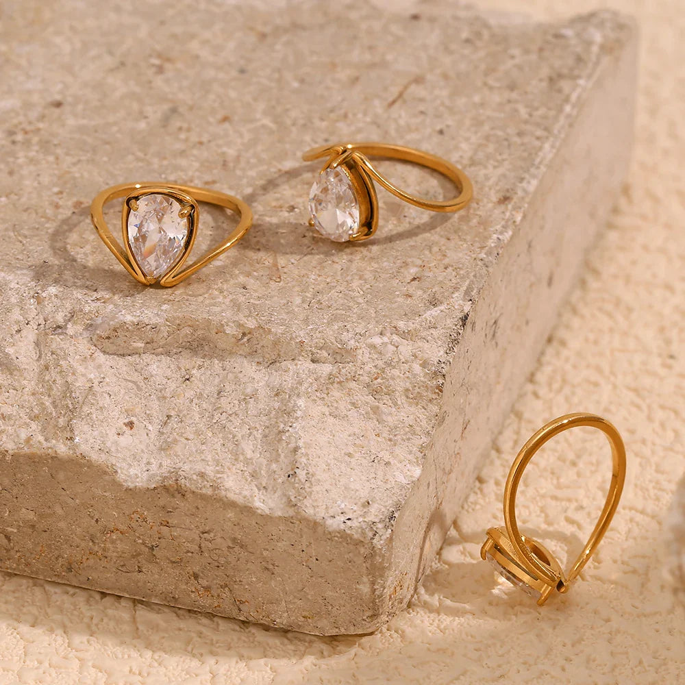 Minimalistischer Tropfenring mit Zirkonia und 18K Gold