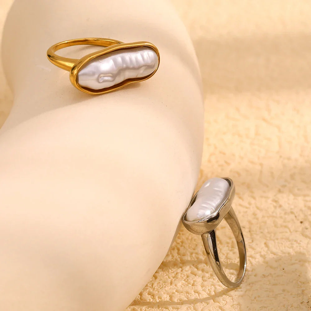 Anel Minimalista de Pérola em Aço Inoxidável 18K