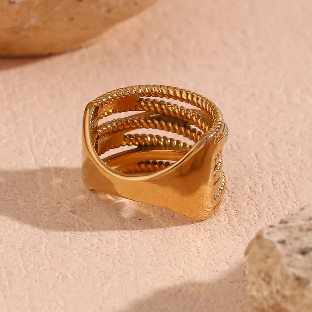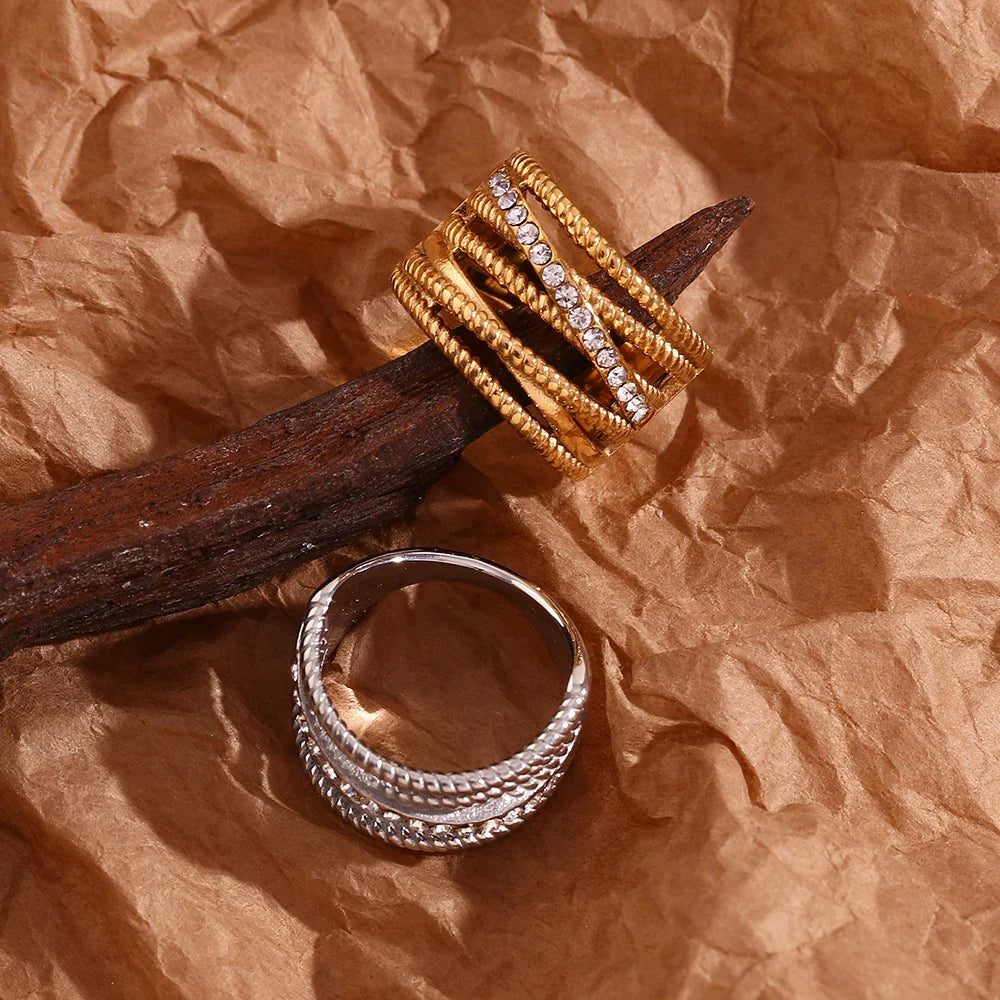 Descubra a elegância e sofisticação do nosso Anel Multicamadas com Torções, uma peça única que combina estilo e durabilidade. Feito em aço inoxidável 316L, este anel é perfeito para quem busca um acessório que não mancha e é hipoalergênico, garantindo conforto e beleza em qualquer ocasião.