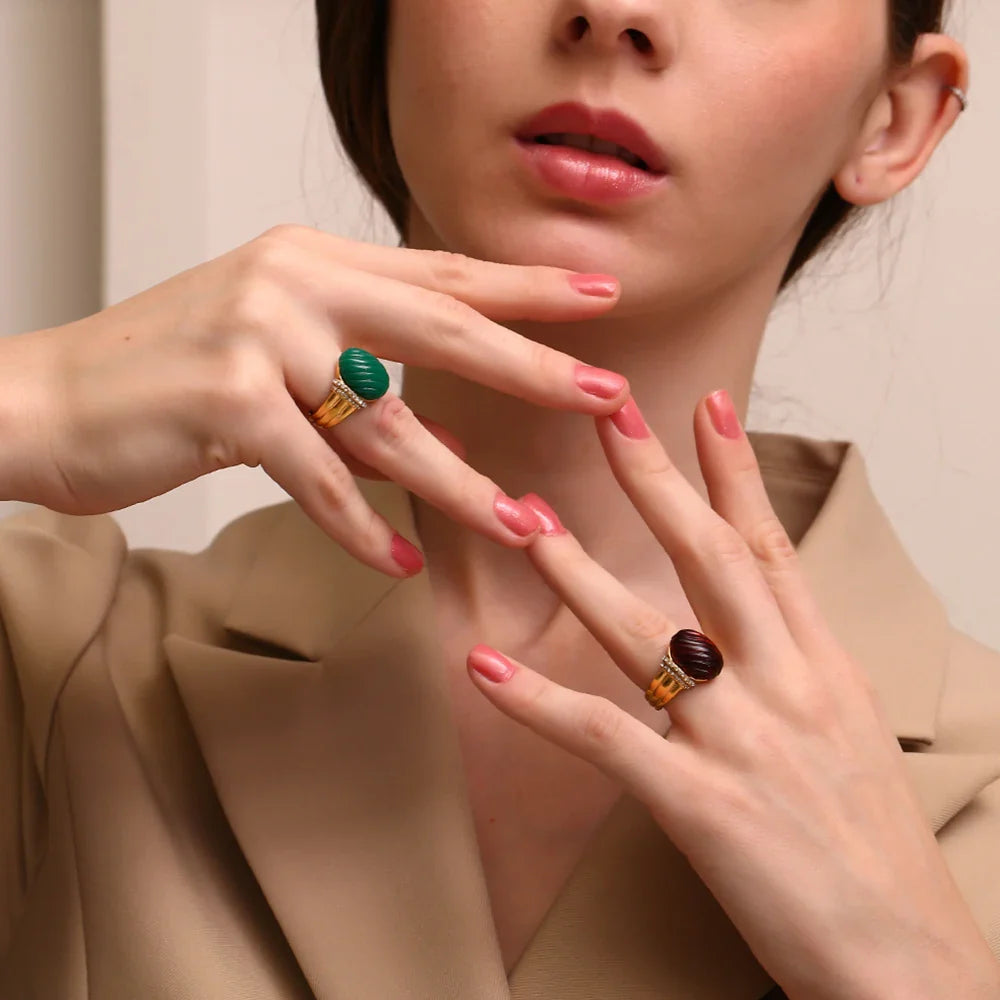 Descubra a elegância e o charme do nosso Anel Oval de Acrílico com Zircônia, uma peça sofisticada que combina beleza e conforto. Ideal para qualquer ocasião, este anel é um verdadeiro destaque em qualquer coleção de joias.