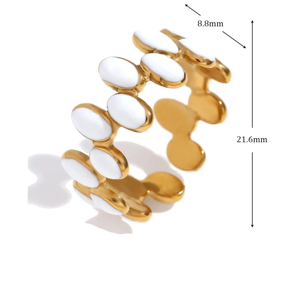 Anel Oval Geométrico com Esmalte Branco