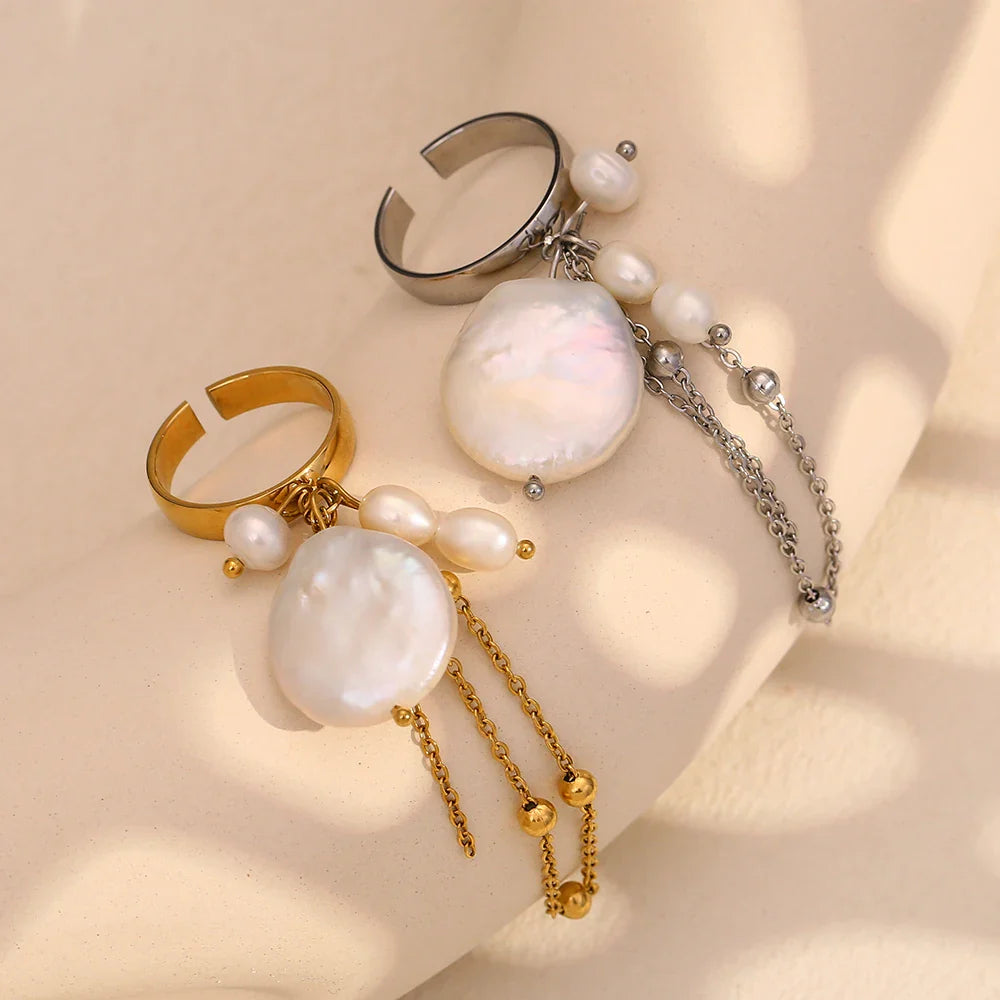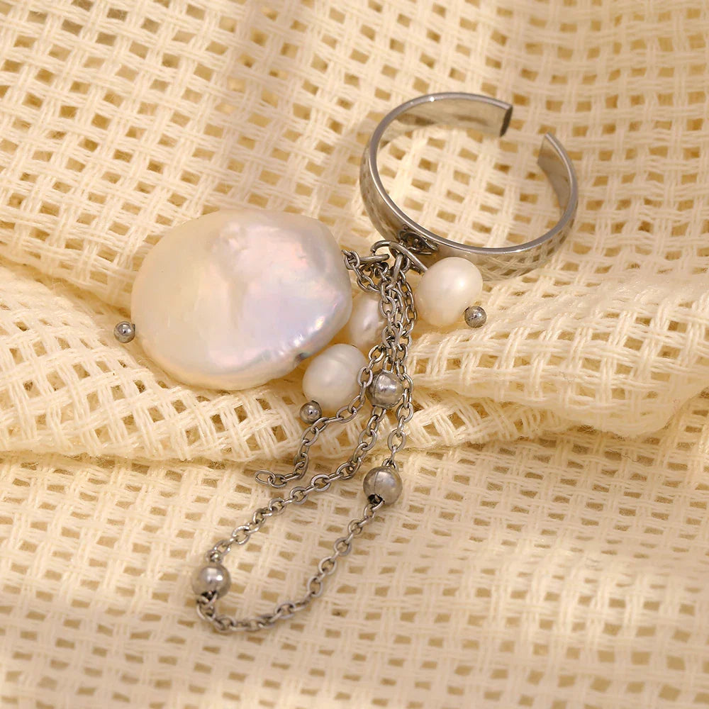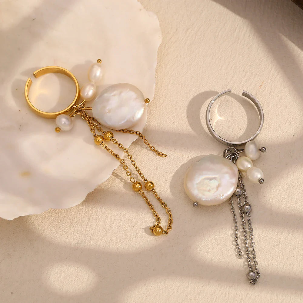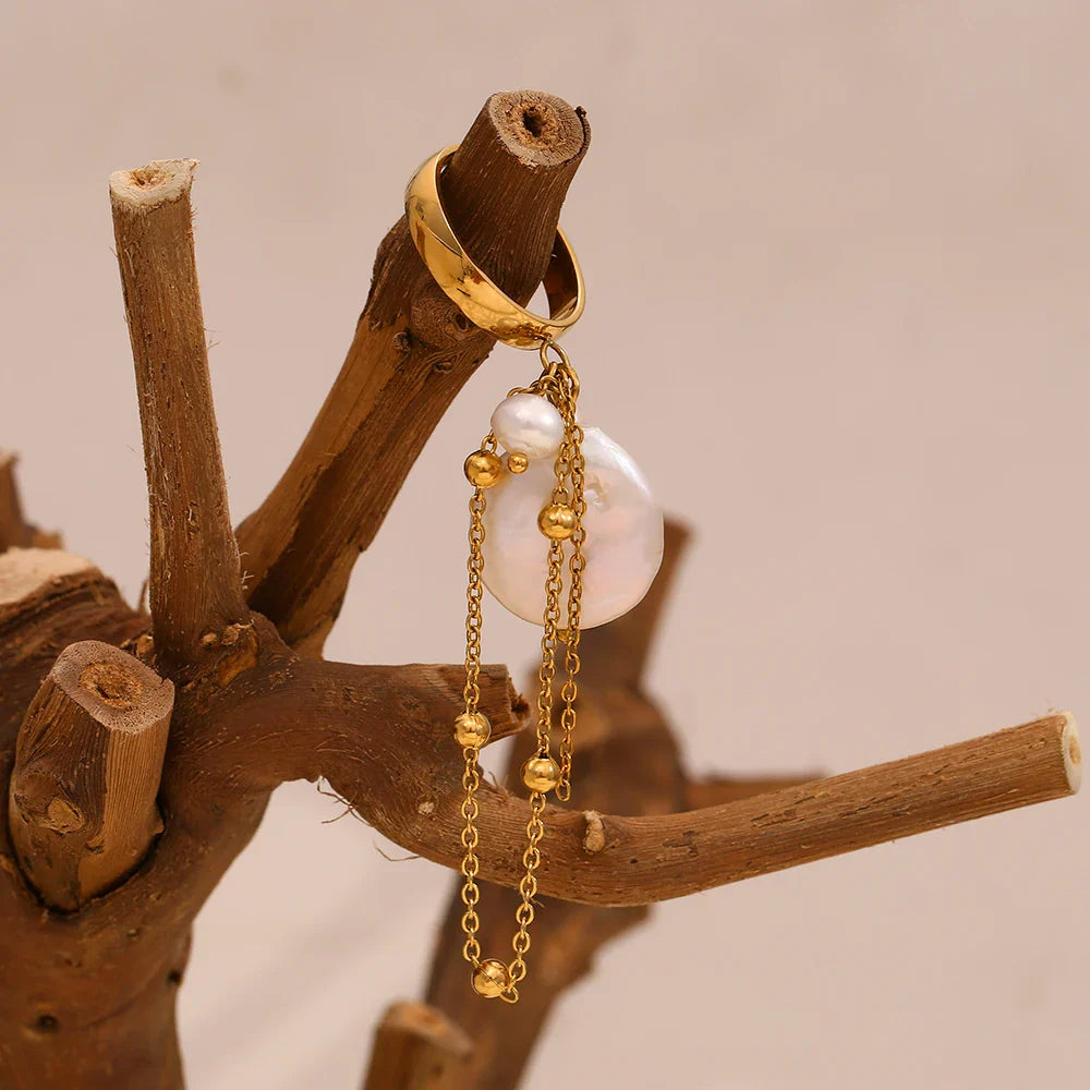 Adicione um toque de glamour ao seu estilo com o Anel de Pérola Barroca com Borla, uma escolha perfeita para mulheres que apreciam joias elegantes e exclusivas.