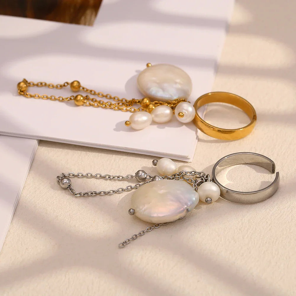 Descubra a elegância atemporal com o nosso Anel de Pérola Barroca com Borla, uma peça que combina sofisticação e modernidade. Feito em aço inoxidável 316L e banhado a ouro 18k, este anel é perfeito para mulheres que buscam um toque de luxo em seu visual diário.