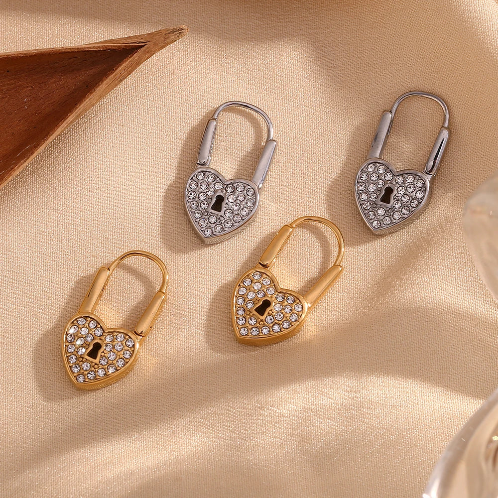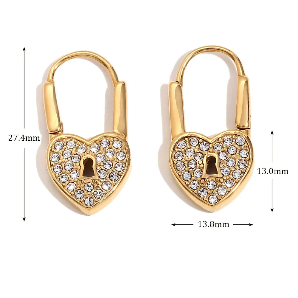 Herzförmiger Creolen-Ohrring mit Strass und 18K-Goldüberzug