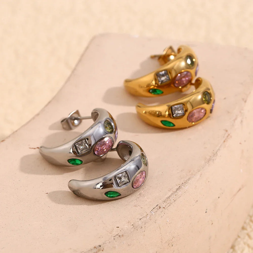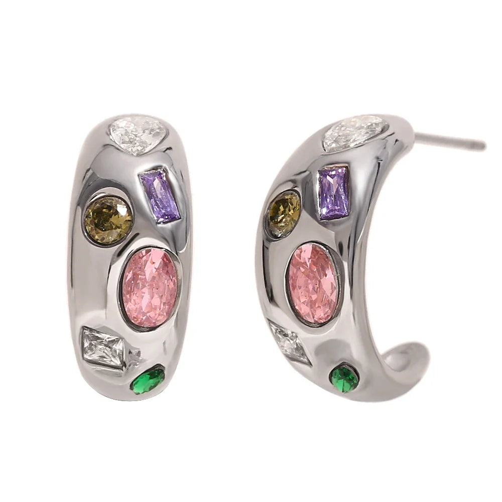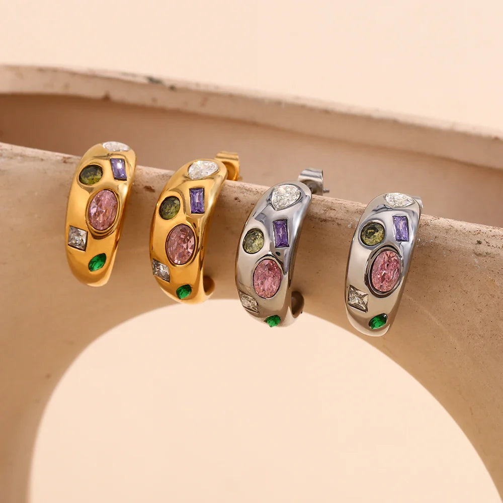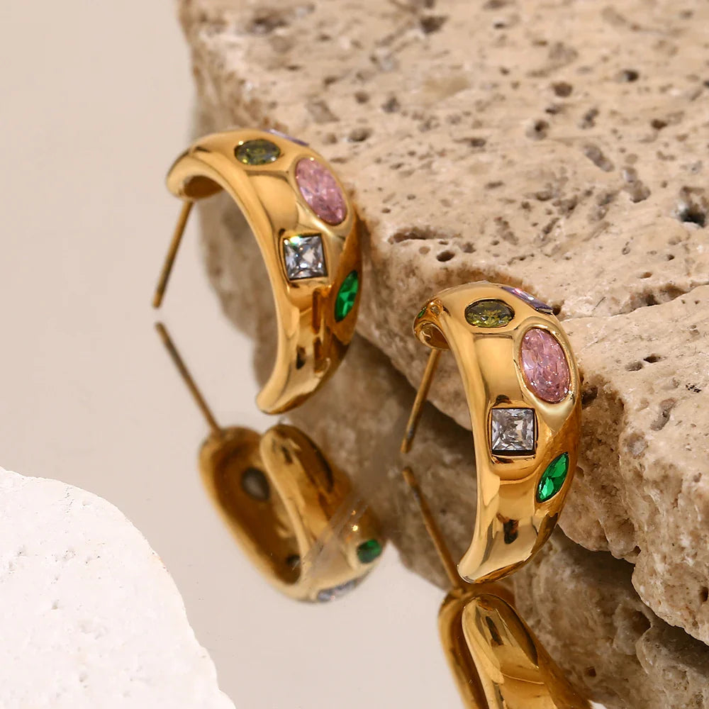 Verwandeln Sie Ihren Look mit den geometrischen bunten Zirkon-Ohrringen von Megan Joias und fühlen Sie sich bei jedem Event selbstbewusst und strahlend.