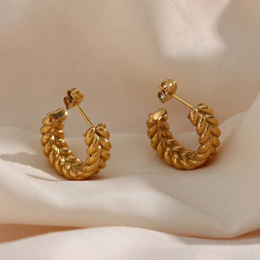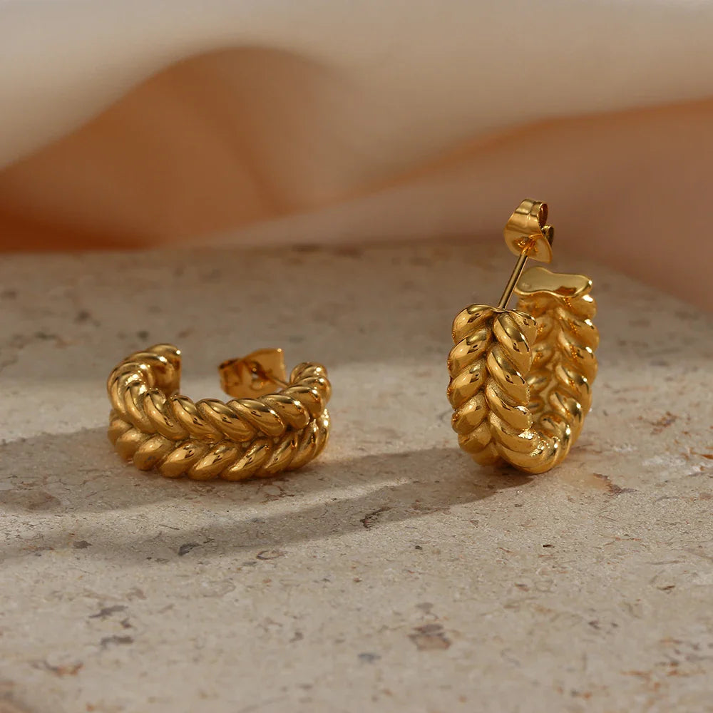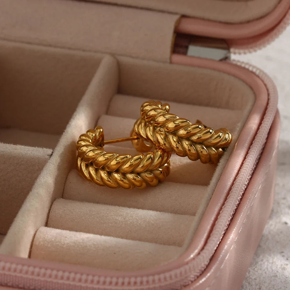Adicione um toque de sofisticação ao seu visual com nossos Brincos de Argola Dourados com Design de Trança. Perfeitos para qualquer ocasião, esses brincos combinam elegância e modernidade, destacando-se como um acessório indispensável.