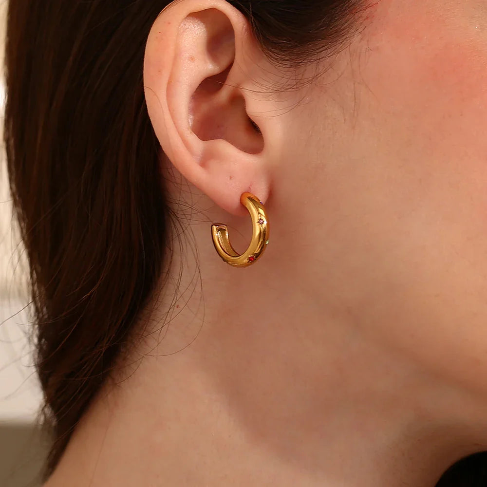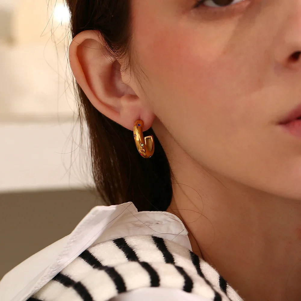 Mit einem Durchmesser von 20 mm sind diese Ohrringe die ideale Wahl für jeden Anlass – von einem lässigen Tag bis hin zu besonderen Events. Verwandeln Sie Ihren Look und fühlen Sie sich selbstbewusst mit unseren Goldenen Creolen-Ohrringen mit 3A-Zirkon.