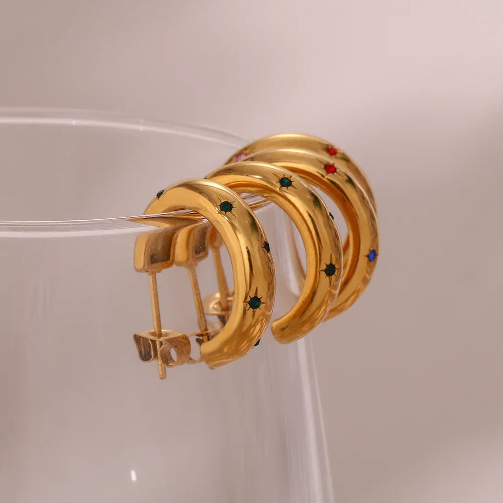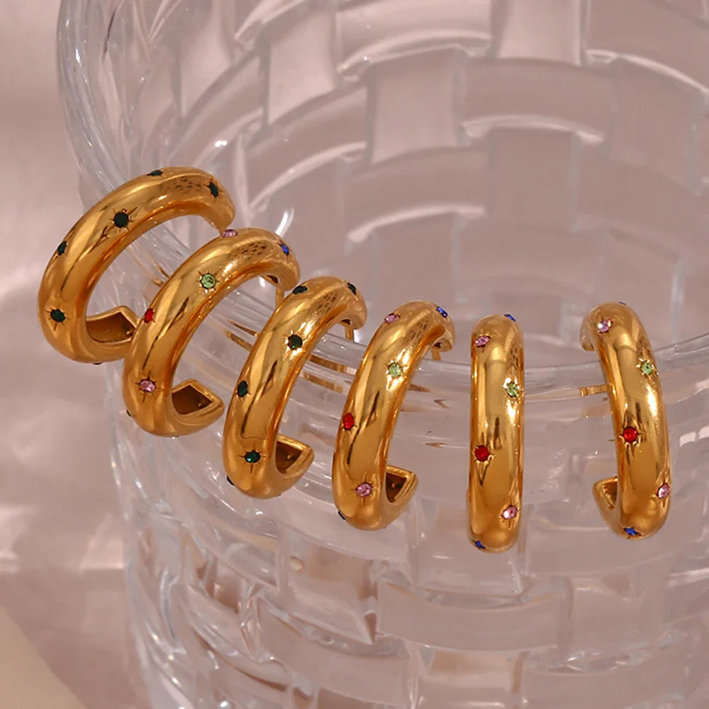Verleihen Sie Ihrem Look einen Hauch von Eleganz und Raffinesse mit unseren Goldenen Creolen-Ohrringen. Hergestellt aus hochwertigem 316L-Edelstahl, sind diese Ohrringe perfekt für alle, die Stil und Langlebigkeit suchen.