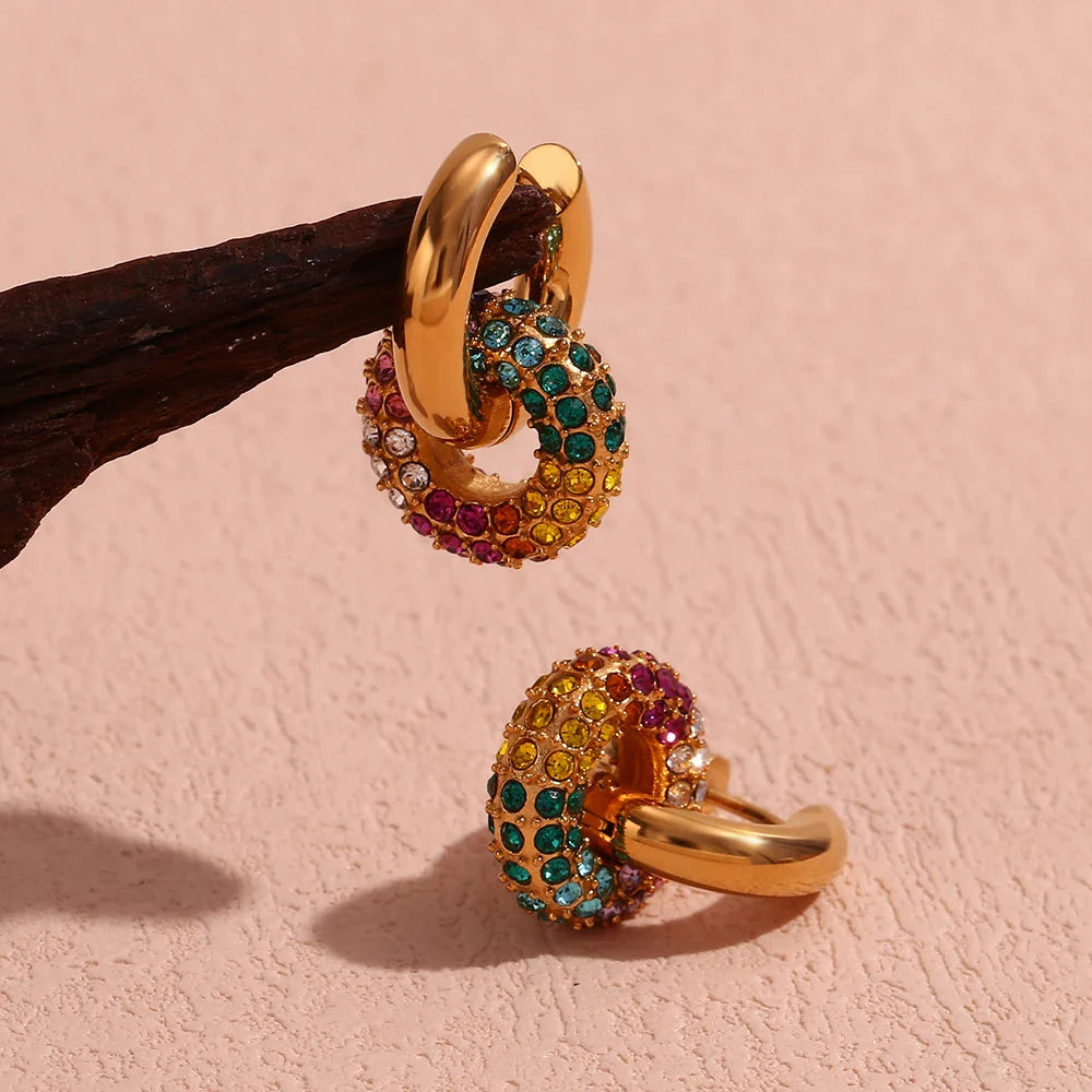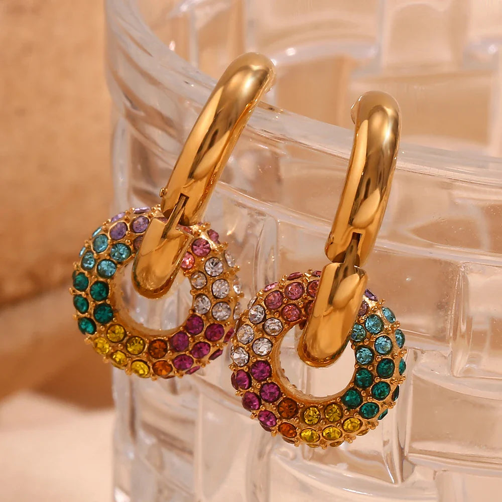 Extravagantes Design: Mit bunten Strasssteinen sind diese Ohrringe ein wahres Spektakel aus Farben und Glanz.