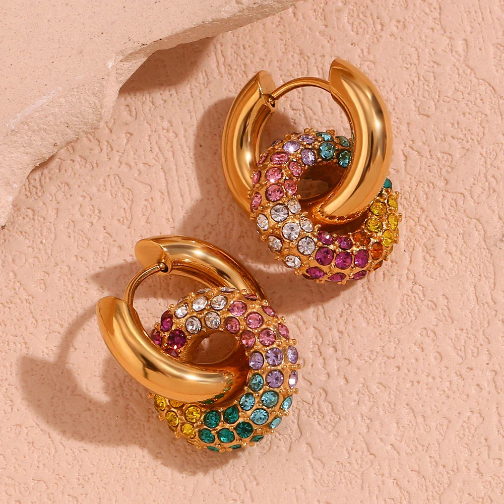 Luxus-Creolen-Ohrringe mit Strass und 18K-Goldbeschichtung