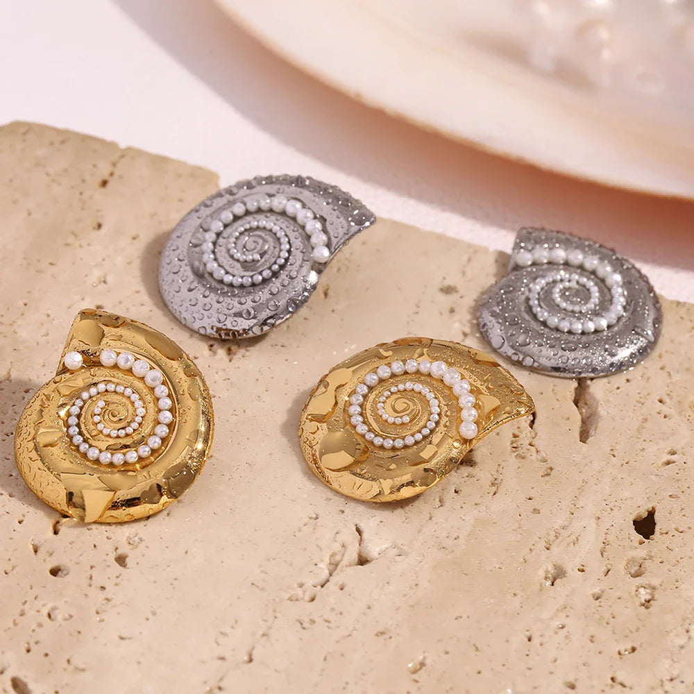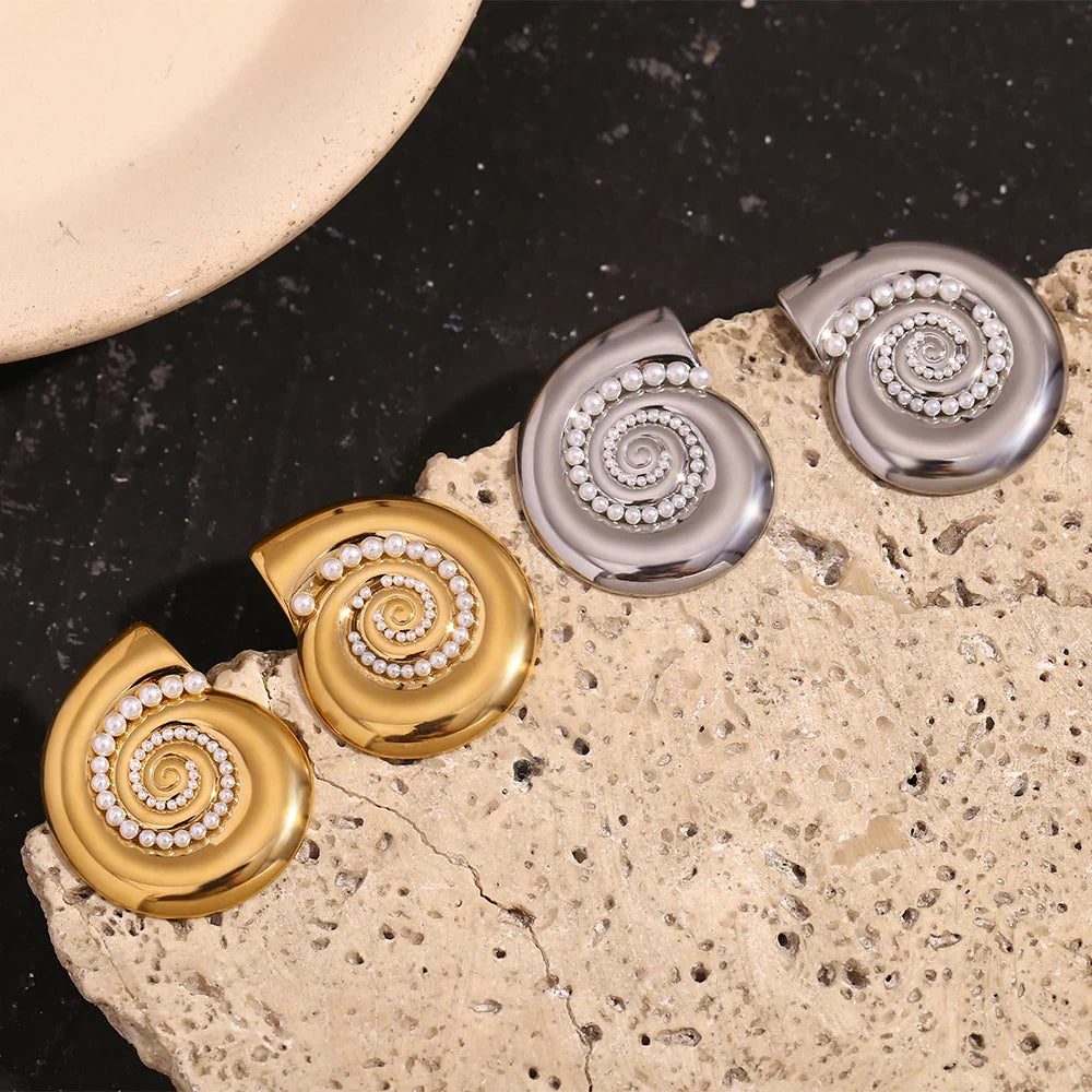 Invista em um acessório que combina com qualquer ocasião e eleve seu estilo com os Brincos Caracol com Pérolas e Ouro 18K.
