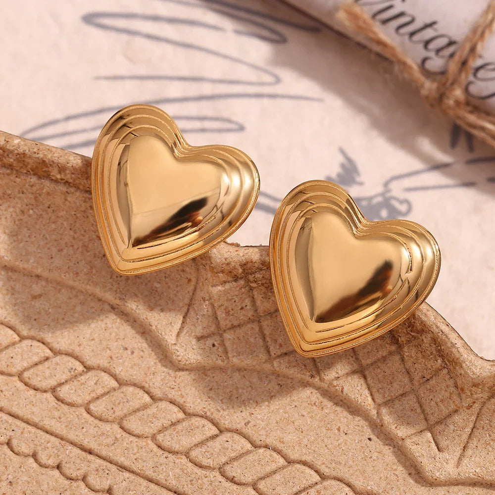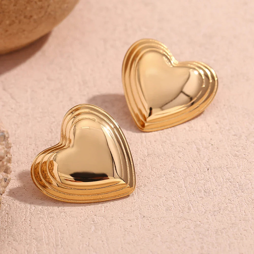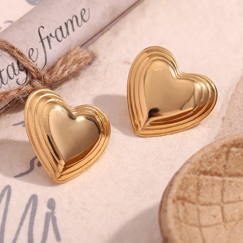 Brincos Coração Dourado em Camadas - Elegância e Charme