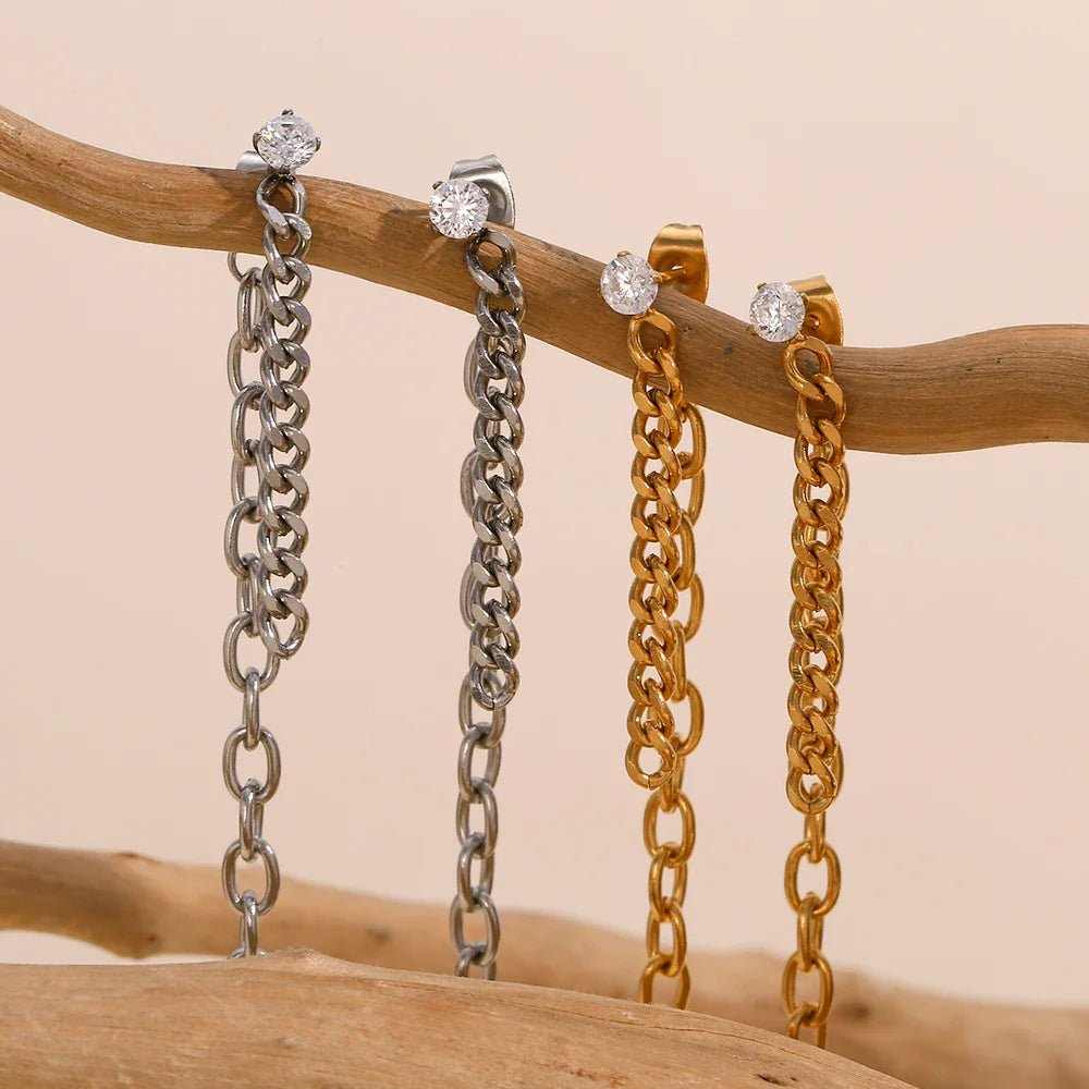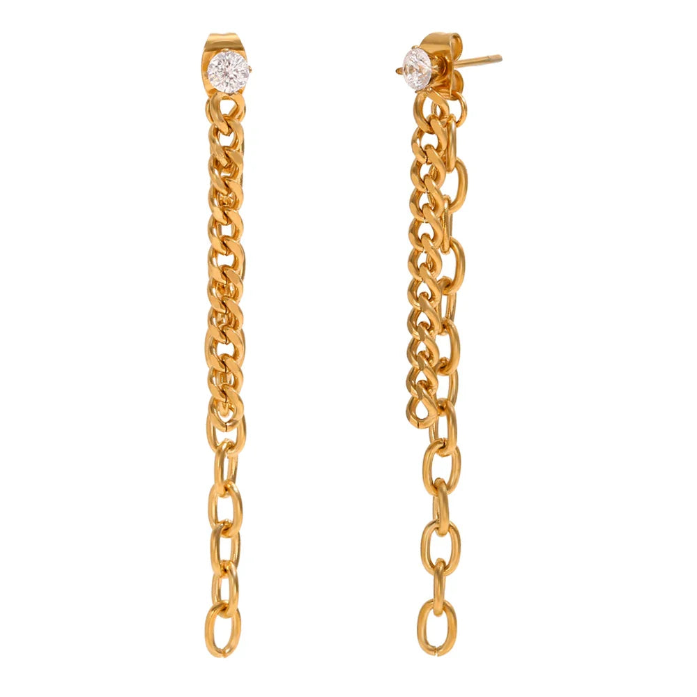 Brincos de Corrente com Zircônia e Banho de Ouro 18k