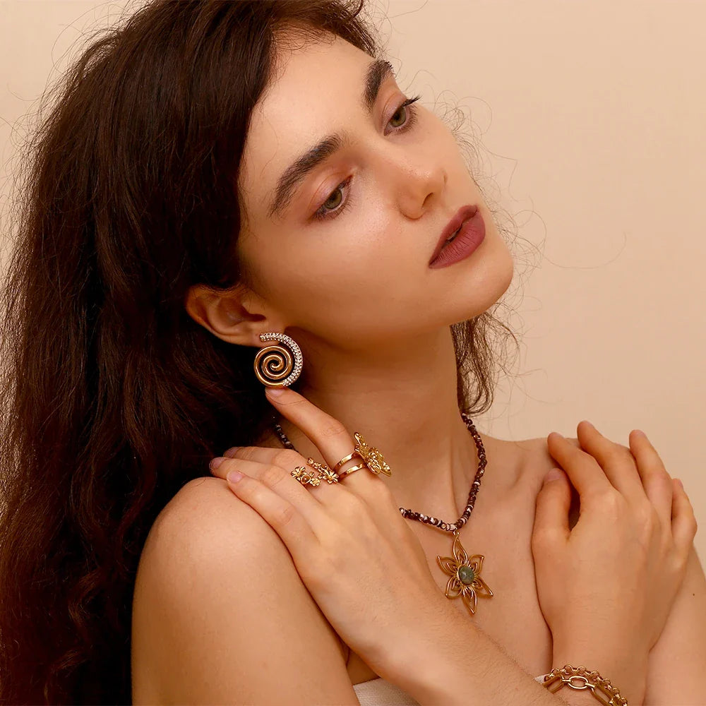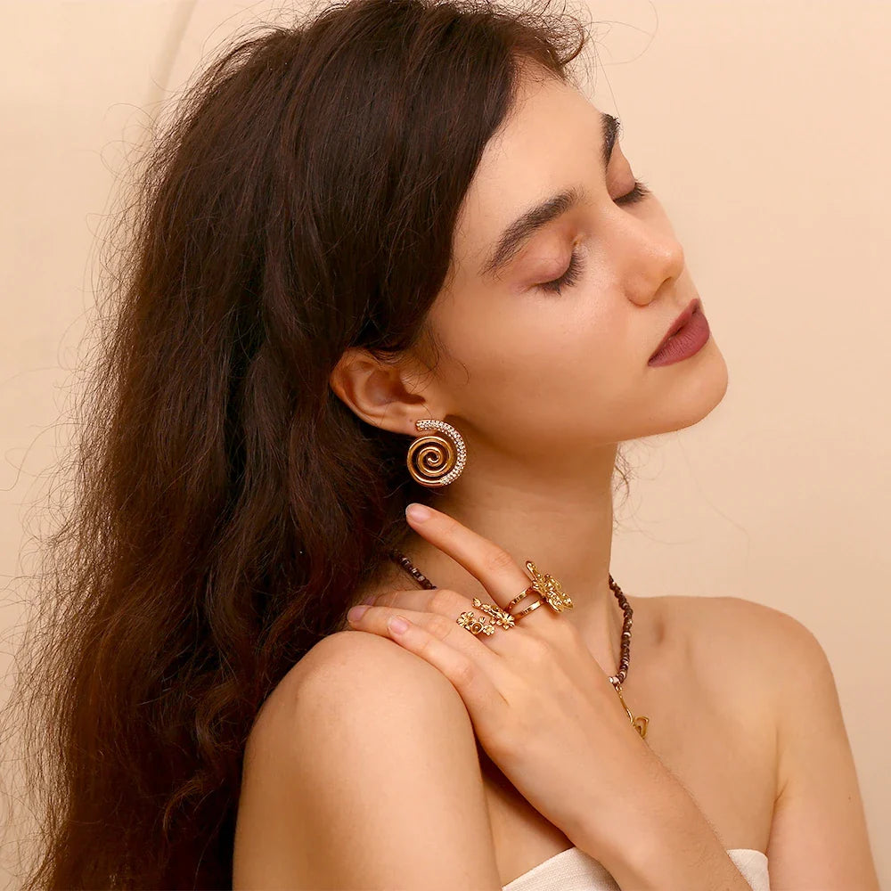 Adicione um toque de sofisticação ao seu visual com nossos Brincos Espiral Dourados com Zircônias. Estes brincos são a escolha perfeita para mulheres que buscam elegância e estilo em cada detalhe.