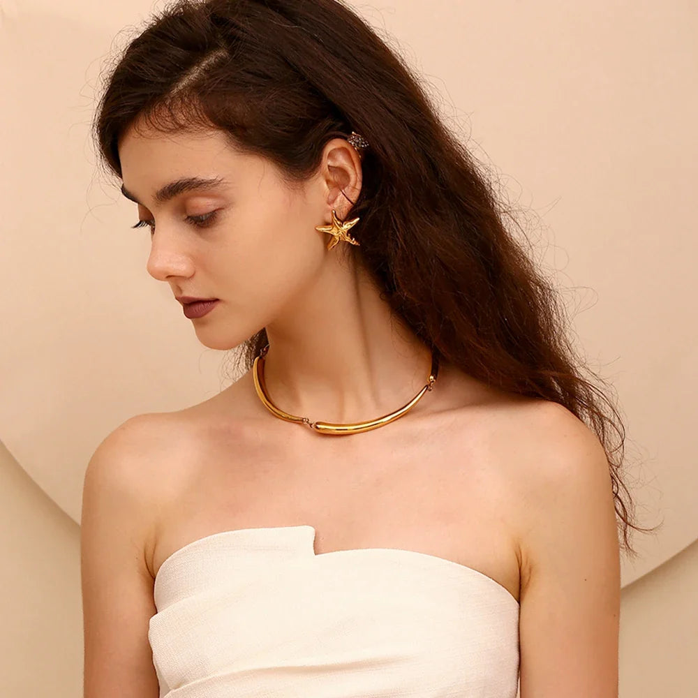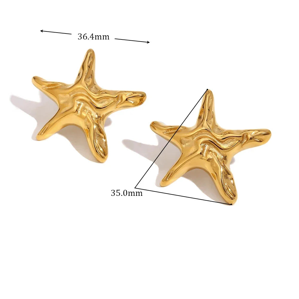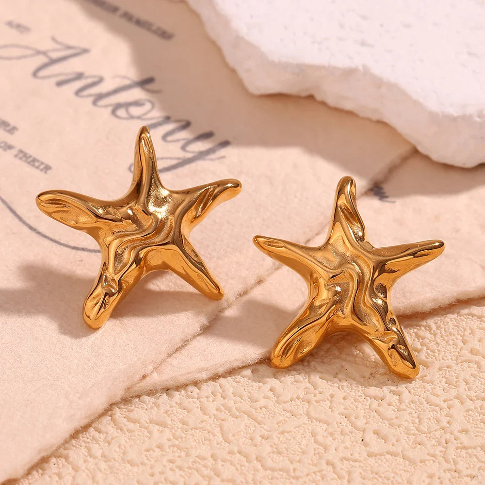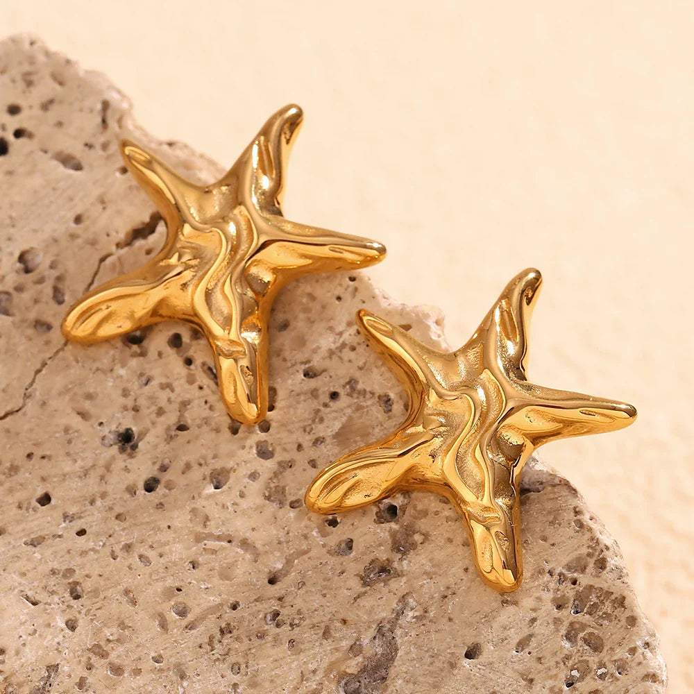 Brincos Estrela do Mar em Aço Inoxidável Banhado a Ouro
