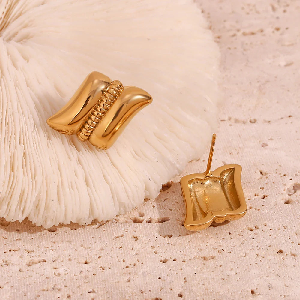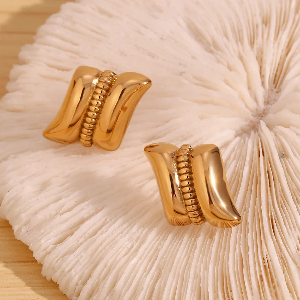 Brincos Geométricos de Aço Inoxidável Banhados a Ouro