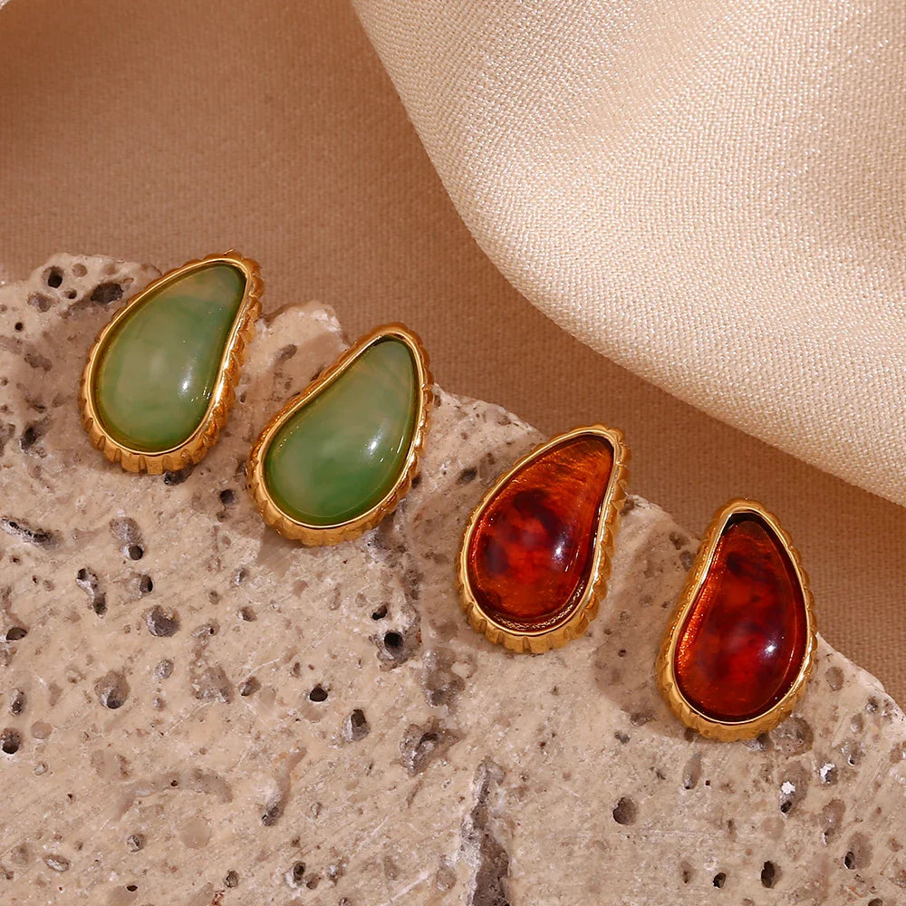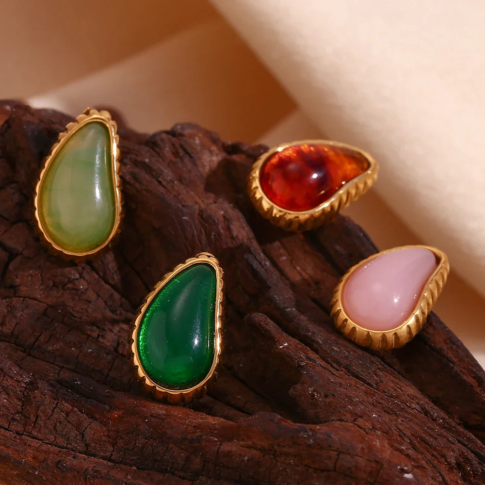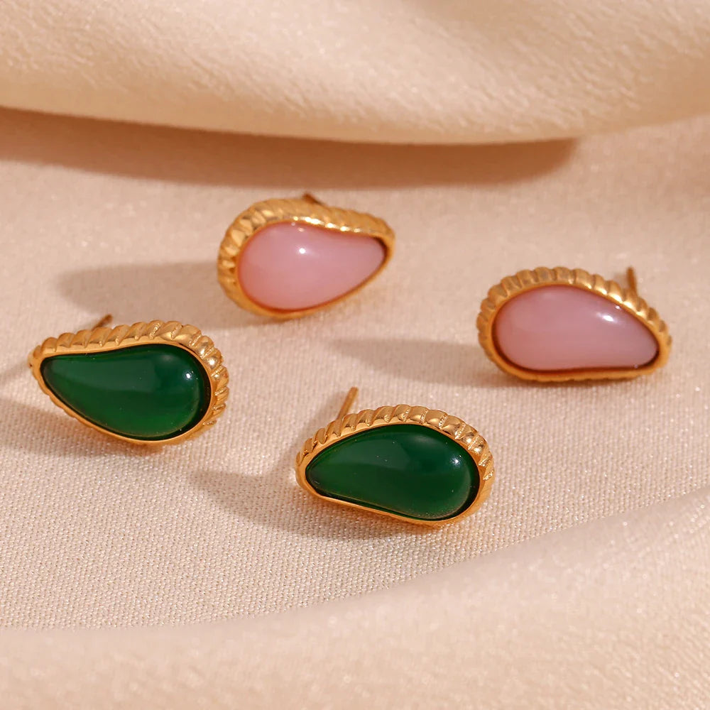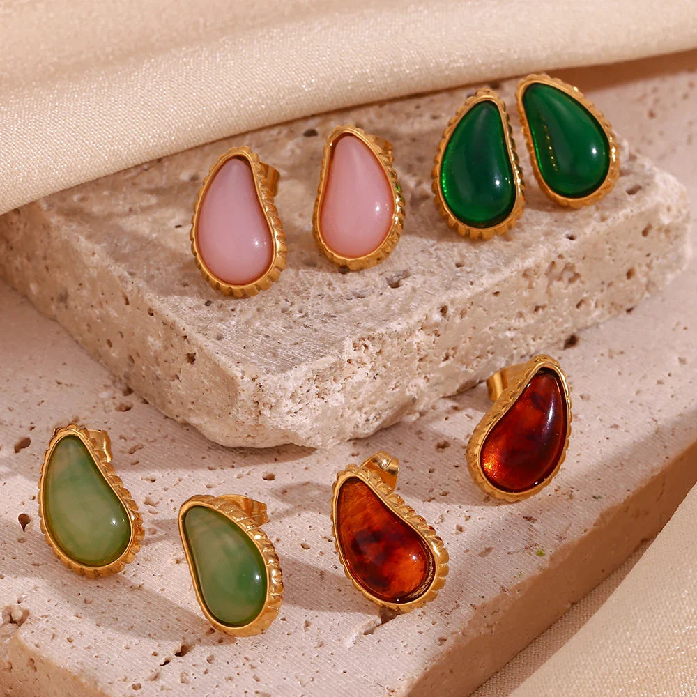 Brincos Gota de Água com Zircônia em Aço Inoxidável