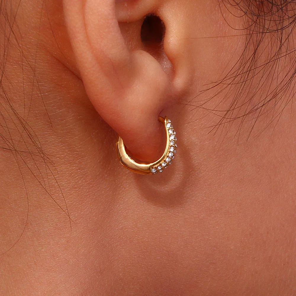Transforme seu estilo com os Brincos Huggies de Zircônia da Loja Megan e sinta-se confiante e radiante todos os dias.