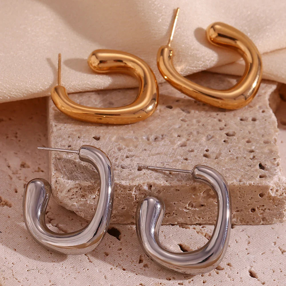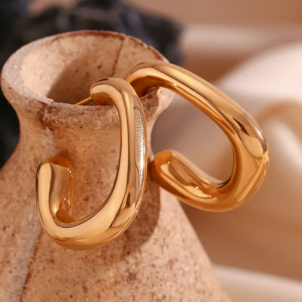 Invista em elegância e qualidade com nossos Brincos Ocos Geométricos Banhados a Ouro. Eles são mais do que acessórios, são uma declaração de estilo.