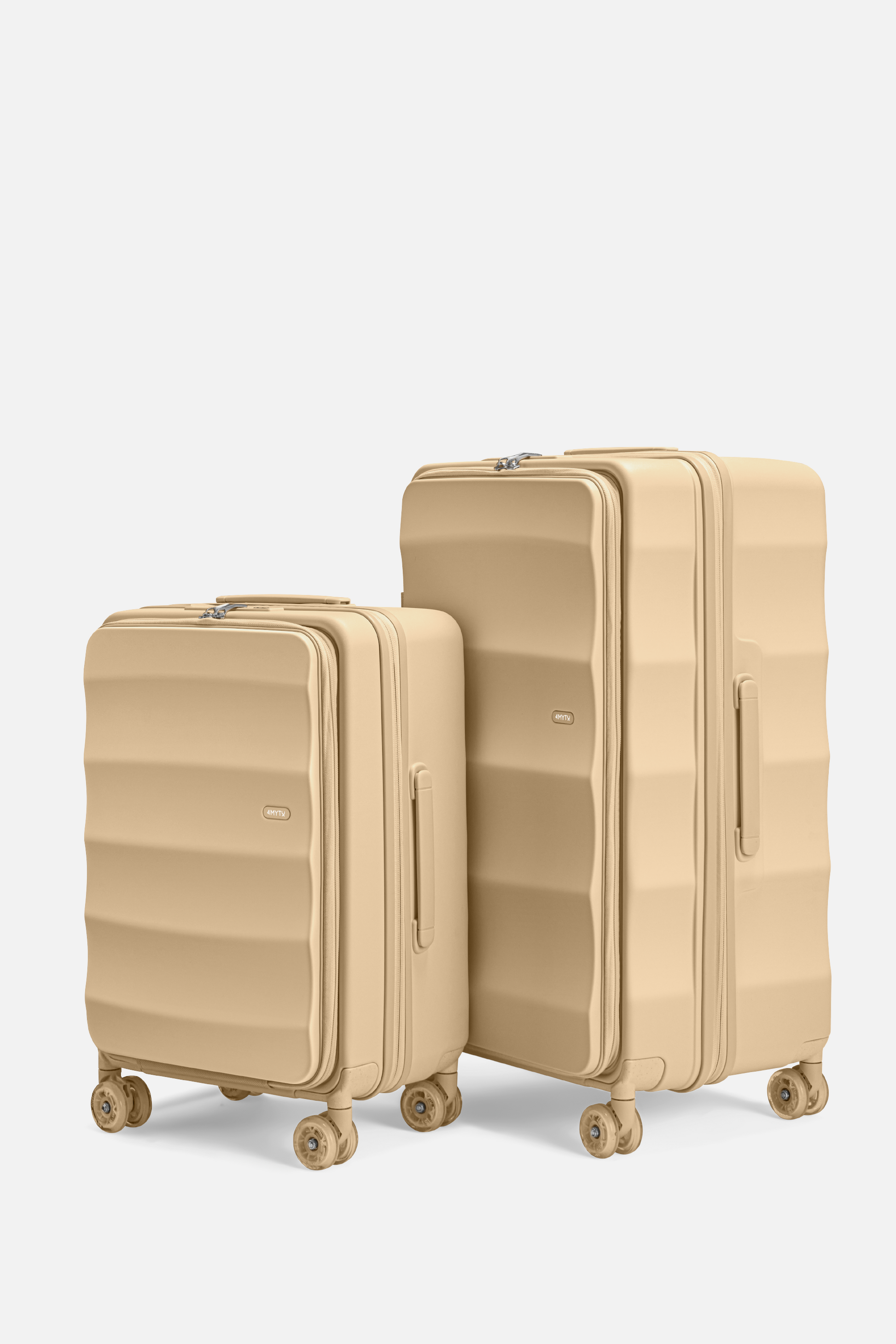 Be prepared for any adventure with the timeless 4MYTU luggage set, designed for the modern traveler. This set includes both the Carry On and Checked luggage, crafted for ultimate comfort and durability. Featuring a hardshell made from premium polycarbonate, dual-bearing skateboard wheels, and multi-stop handles for personalized ease, this suitcase duo is built to last. Plus, with a lifetime warranty, these will be your trusted travel companions for years to come.