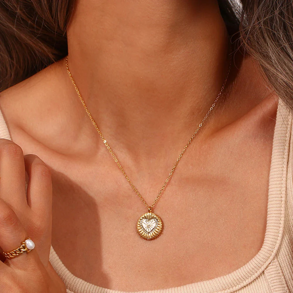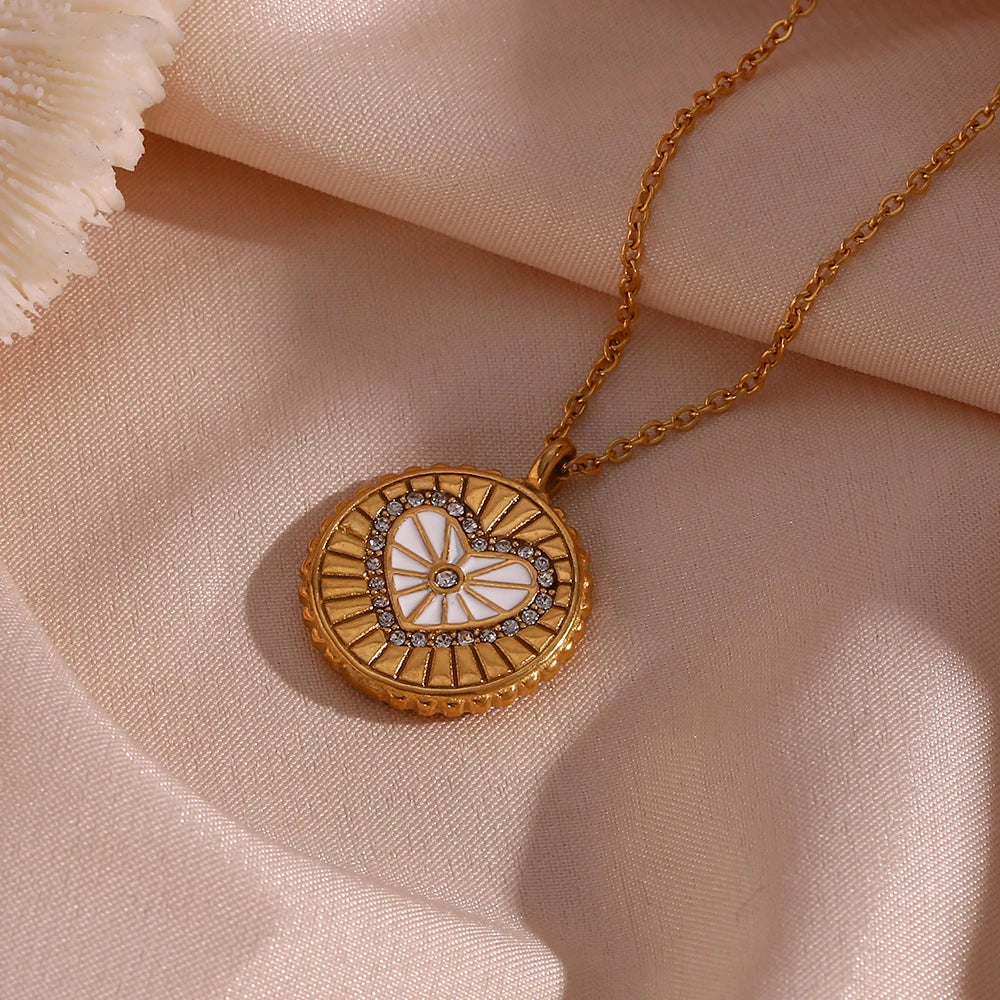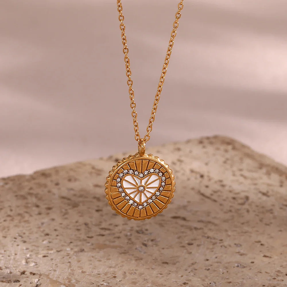 Colar de Aço Inoxidável com Pingente de Coração e Zircônia