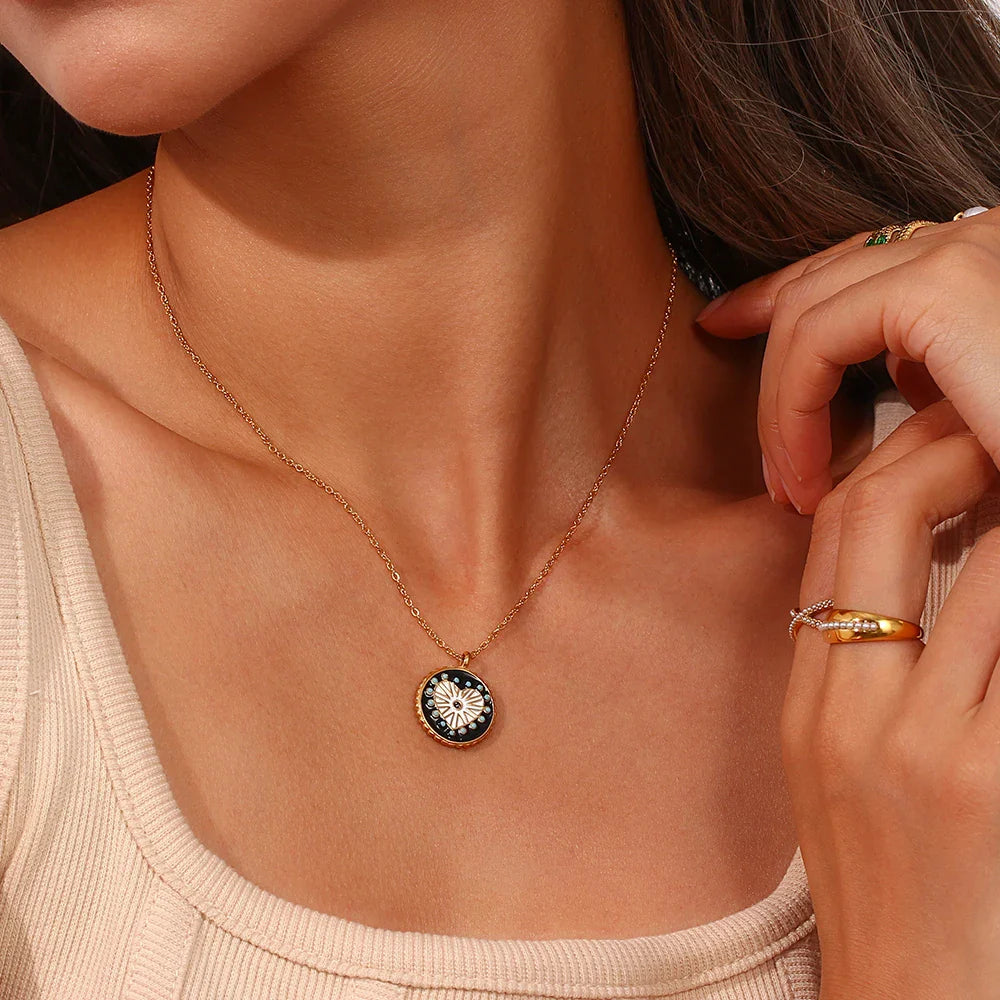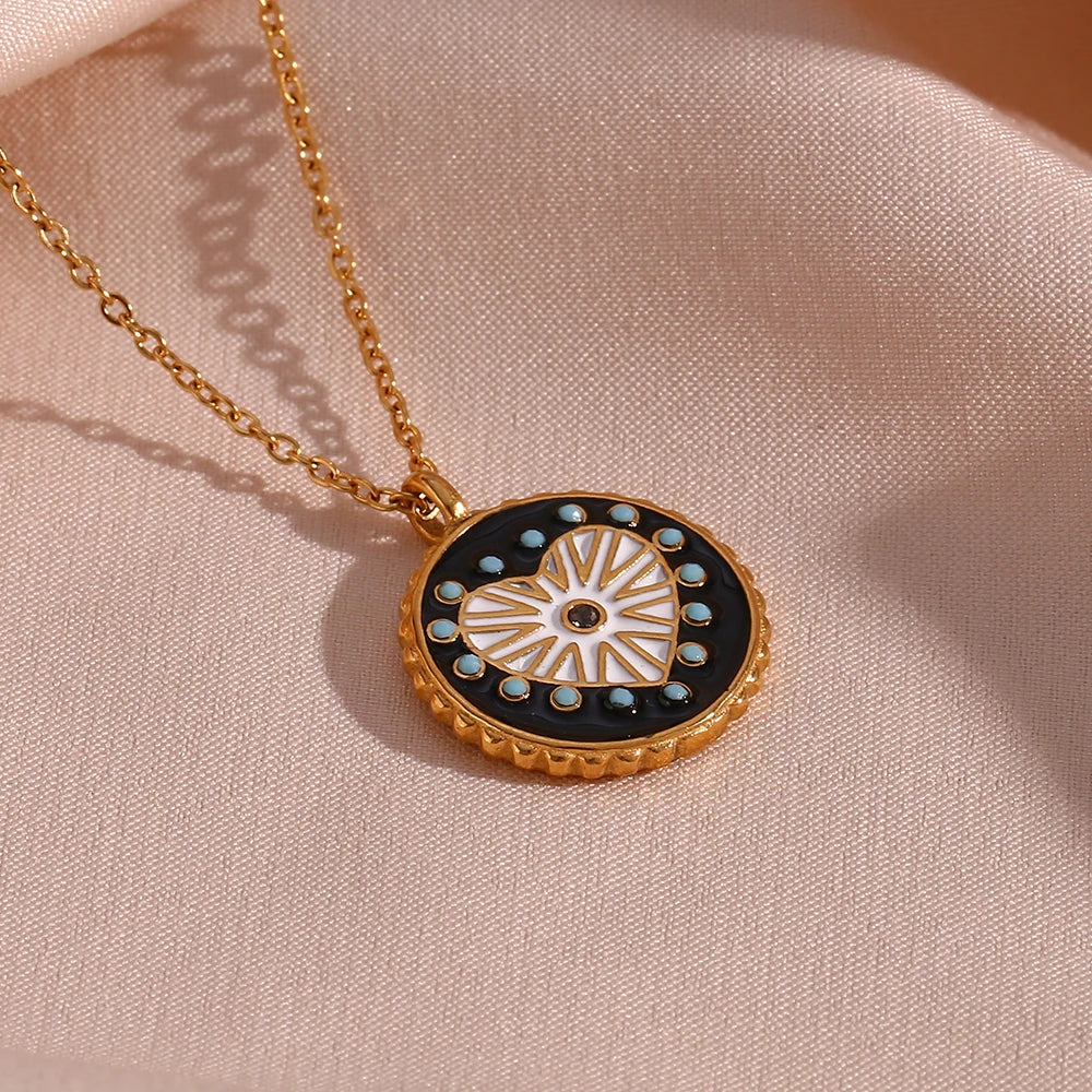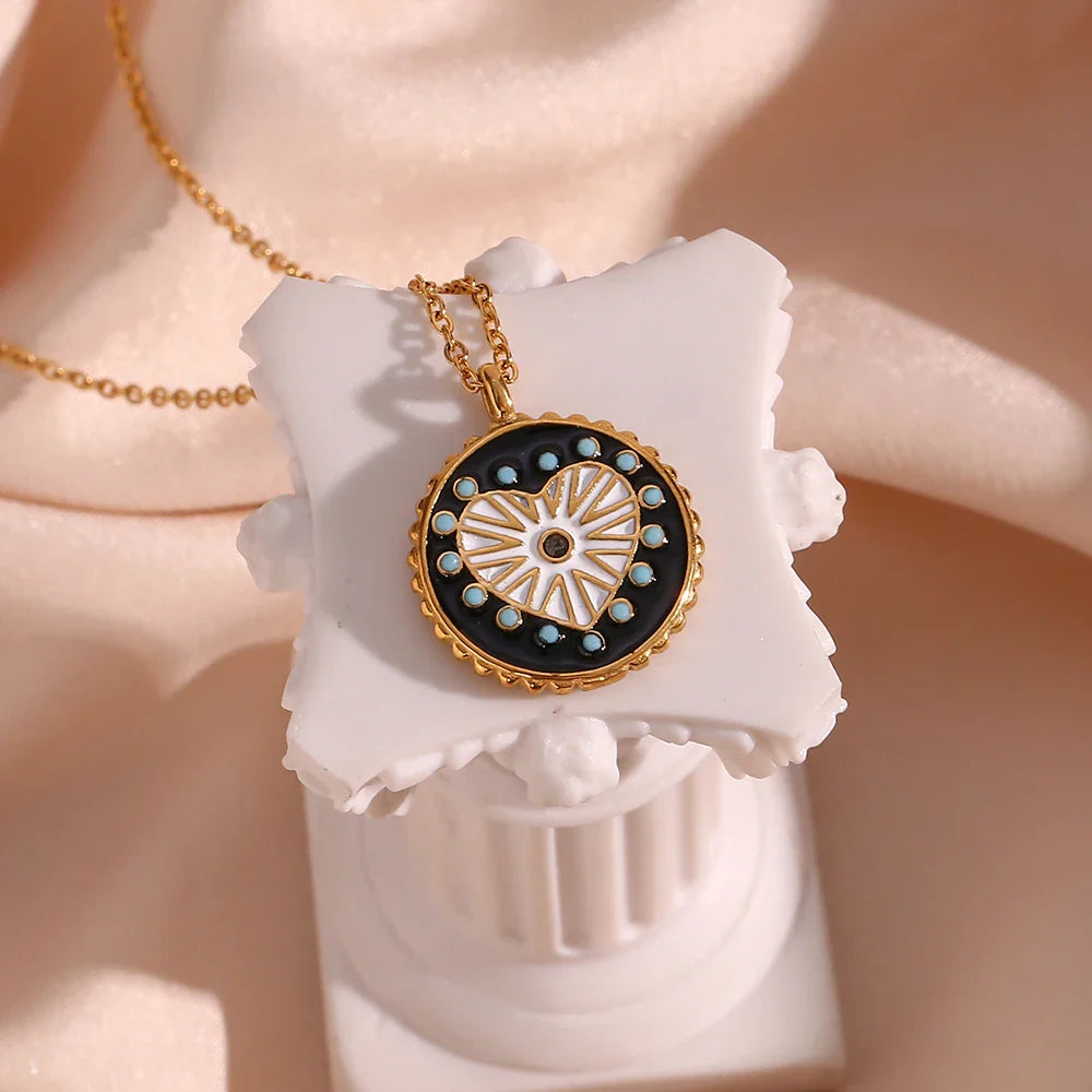 Design Elegante: O pingente de coração com detalhes em esmalte preto e branco adiciona um toque de modernidade e classe.