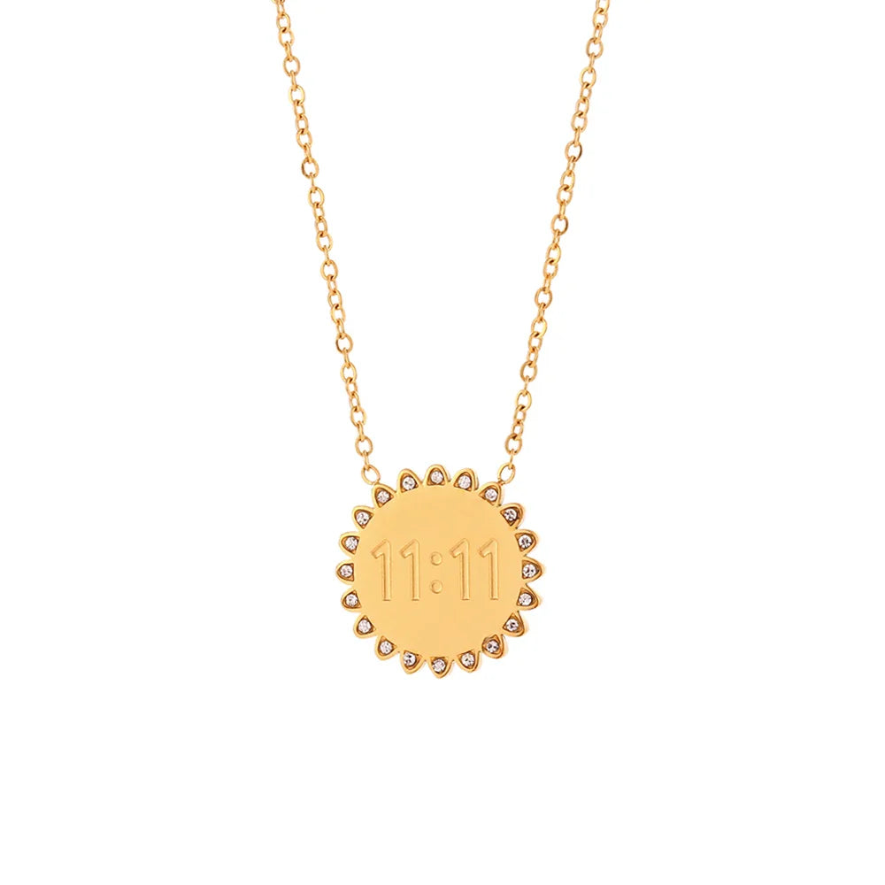 Colar de Aço Inoxidável com Pingente 11:11 e Zircônia