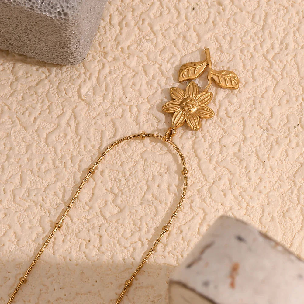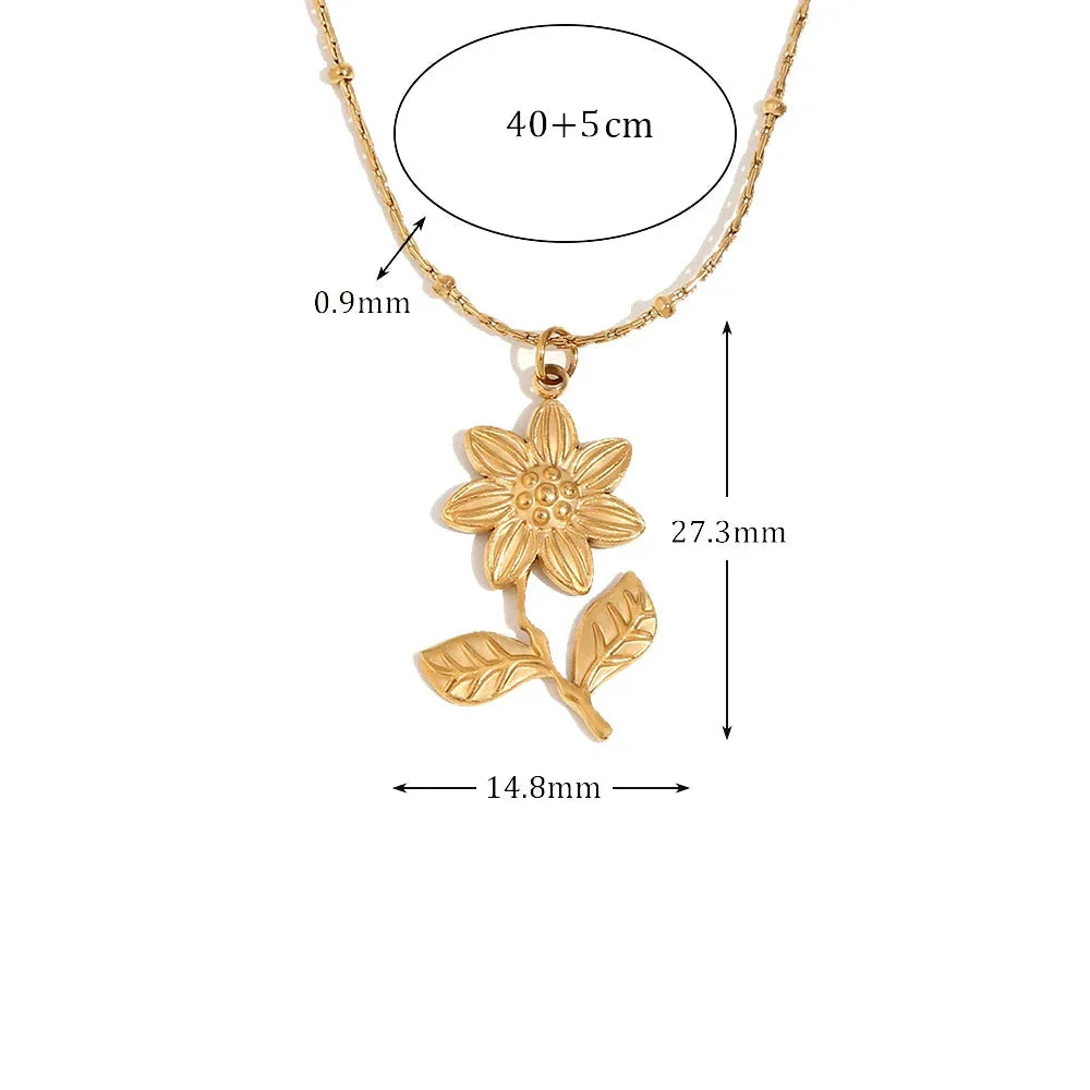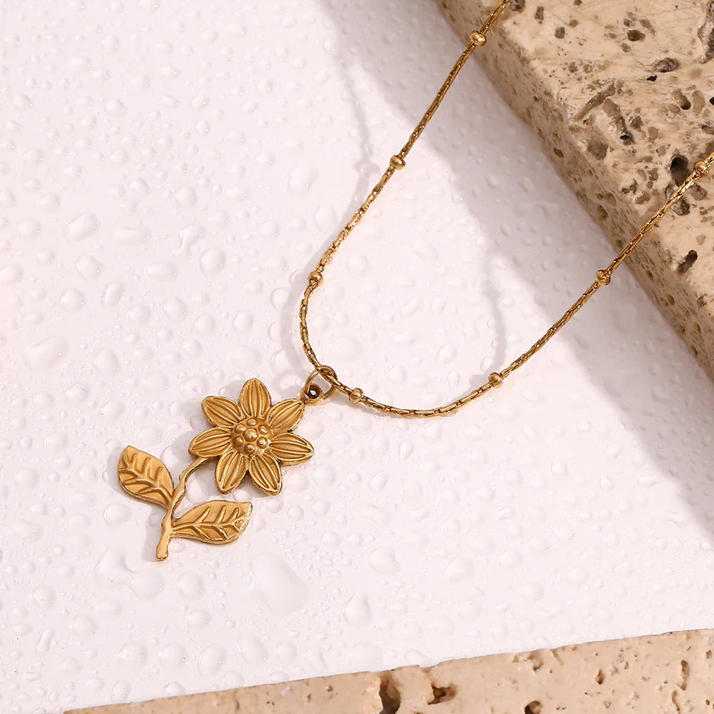 Colar de Aço Inoxidável com Pingente de Flor Dourada