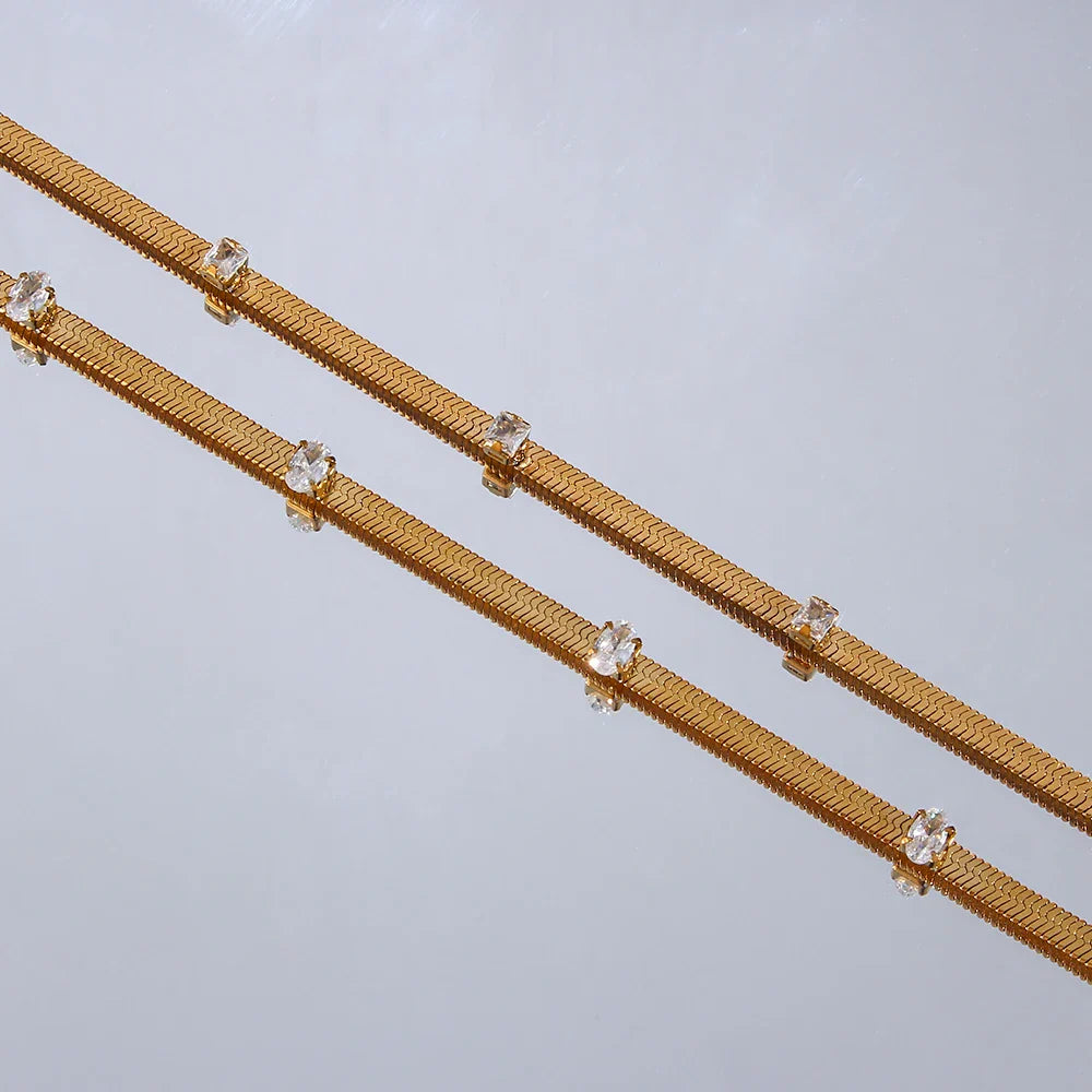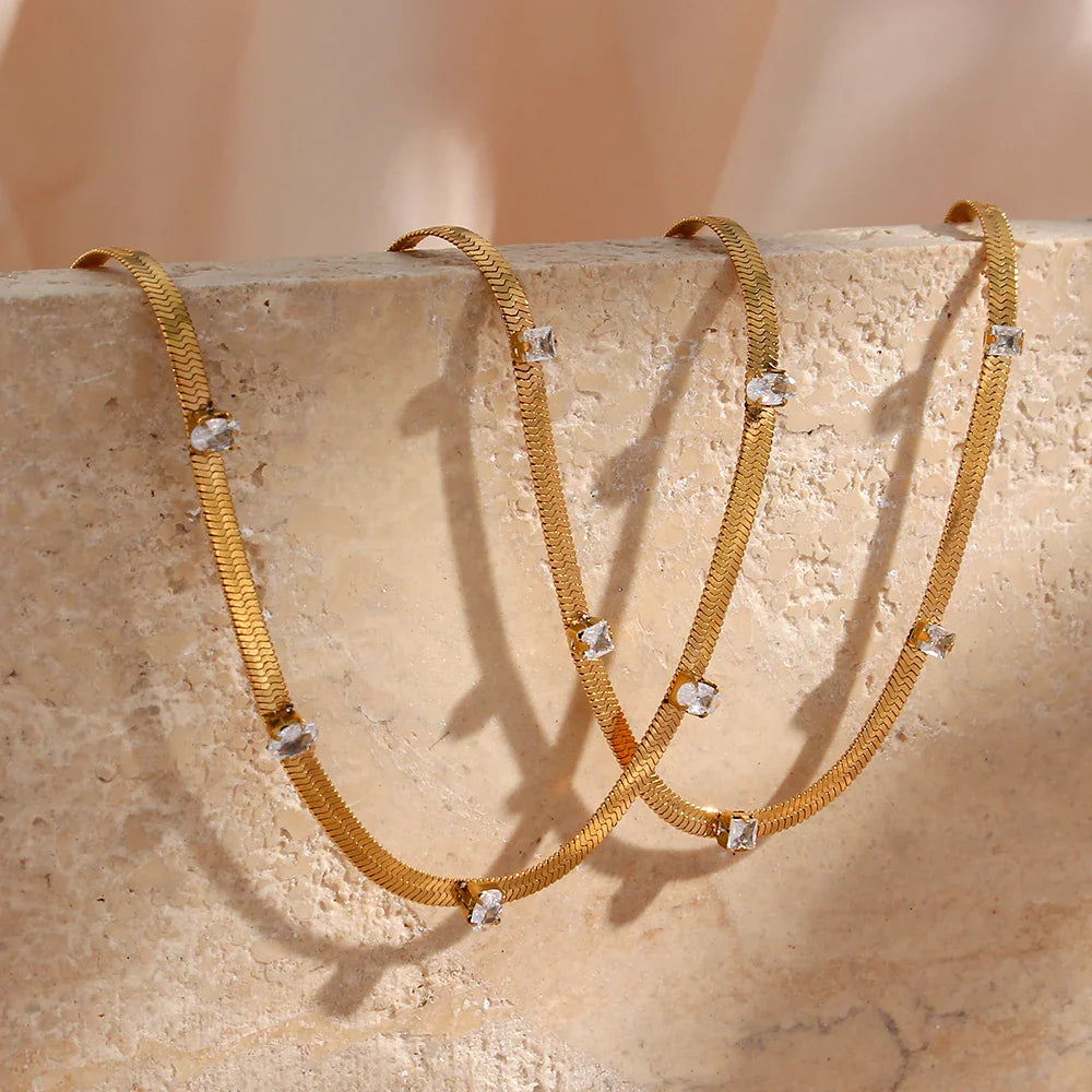 Design Elegante: Corrente de espinha de peixe com detalhes em zircônia que proporcionam um brilho sutil e sofisticado.