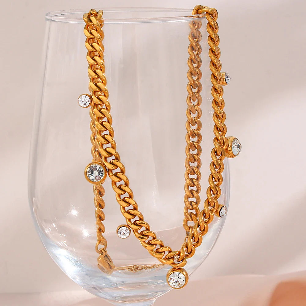 Design Sofisticado: Corrente cubana banhada a ouro 18k com pedras de zircônia que adicionam um brilho especial.