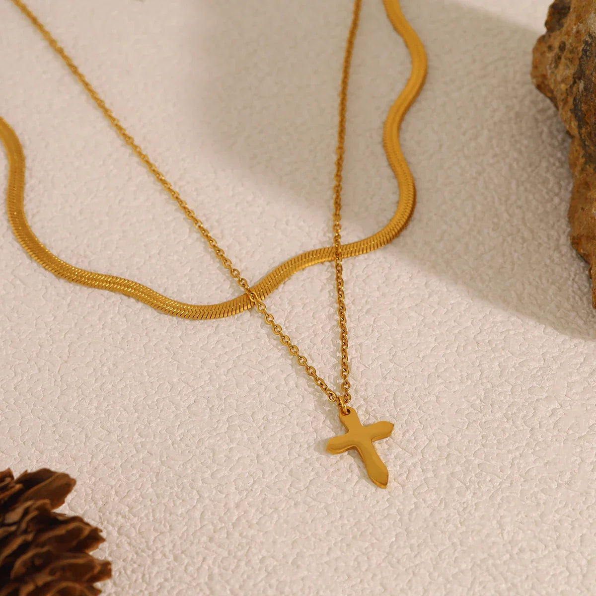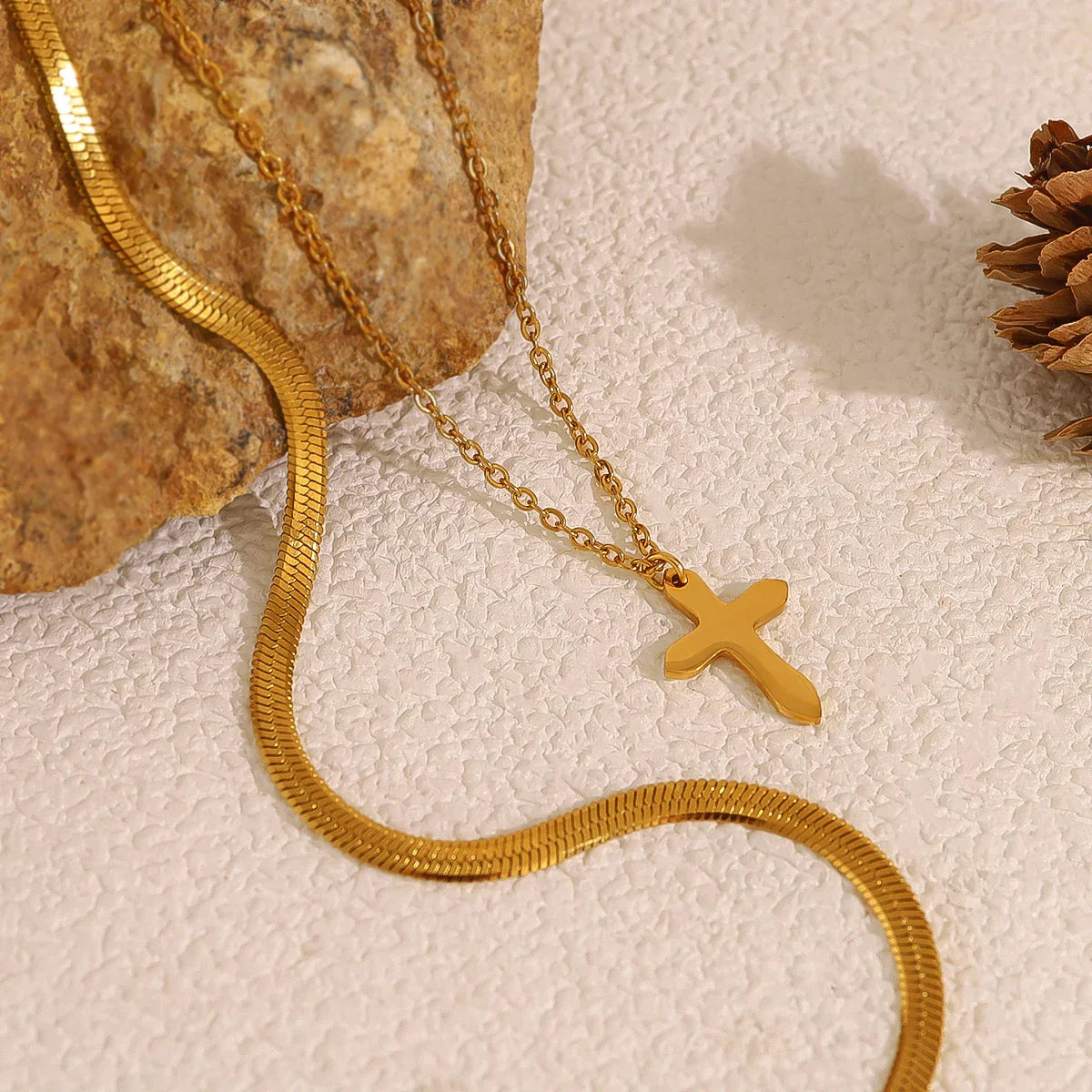 Design Clássico: A corrente cobra e o pingente de cruz criam uma combinação elegante e moderna.