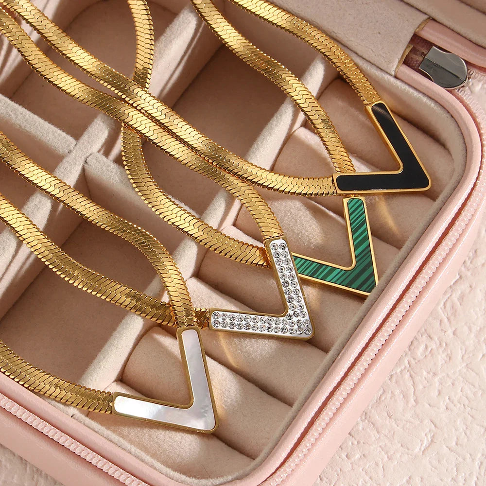 Eleve seu estilo com o nosso Colar Choker V com Zircônia e Concha, uma peça sofisticada que combina elegância e modernidade. Este colar é perfeito para qualquer ocasião, adicionando um toque de glamour ao seu visual.