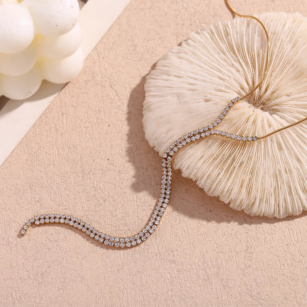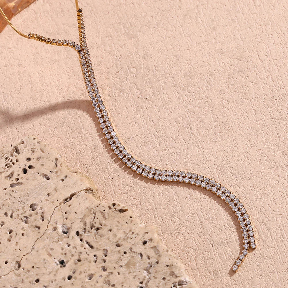 Transforme seu visual com o nosso deslumbrante Colar Clavícula Y, uma peça que combina elegância e modernidade. Feito em aço inoxidável 316L e banhado a ouro 18k, este colar é perfeito para quem busca sofisticação e durabilidade.